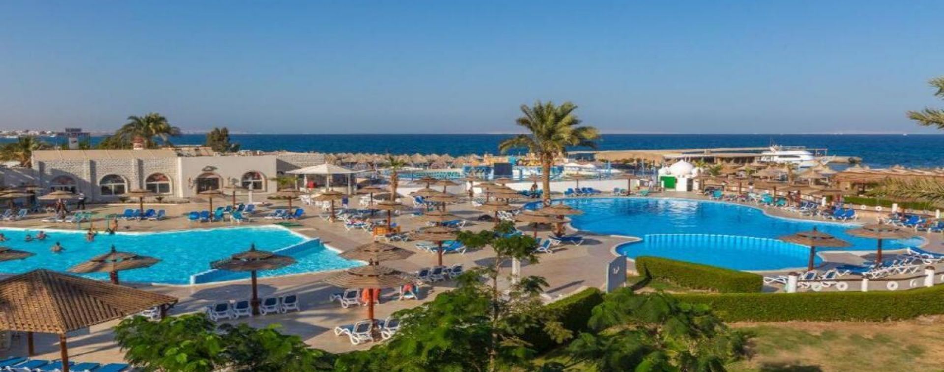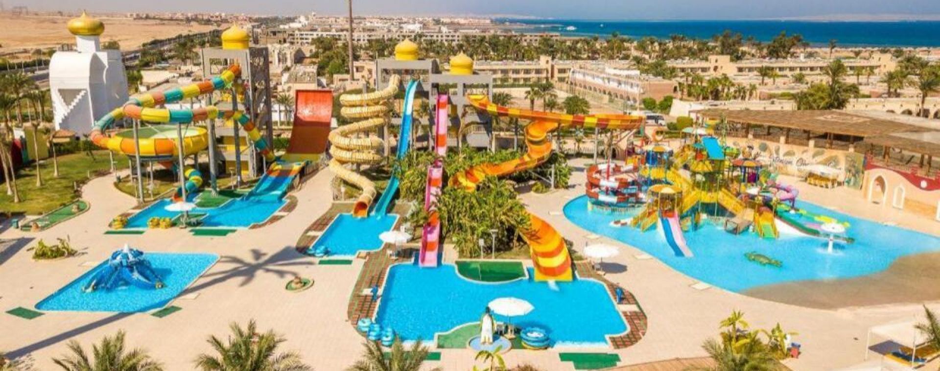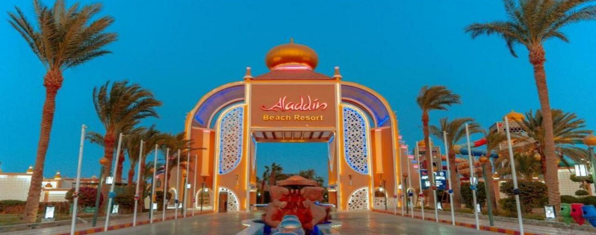 Aladdin Beach Resort 4* се намира на самия бряг на Червено море, в курортната зона на Хургада. Разположен е на около 8–12 км от международното летище и на приблизително 15 км от центъра на града. Хотелът е част от комплекс заедно с съседните Jasmine Village и Ali Baba Palace, с които споделя определени удобства.