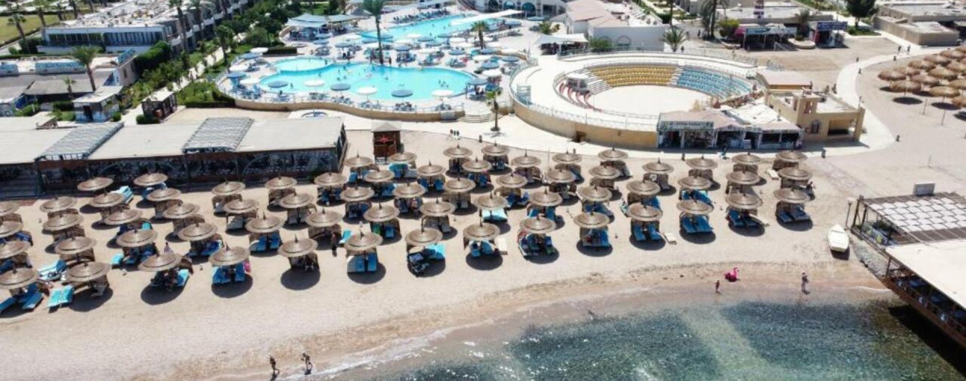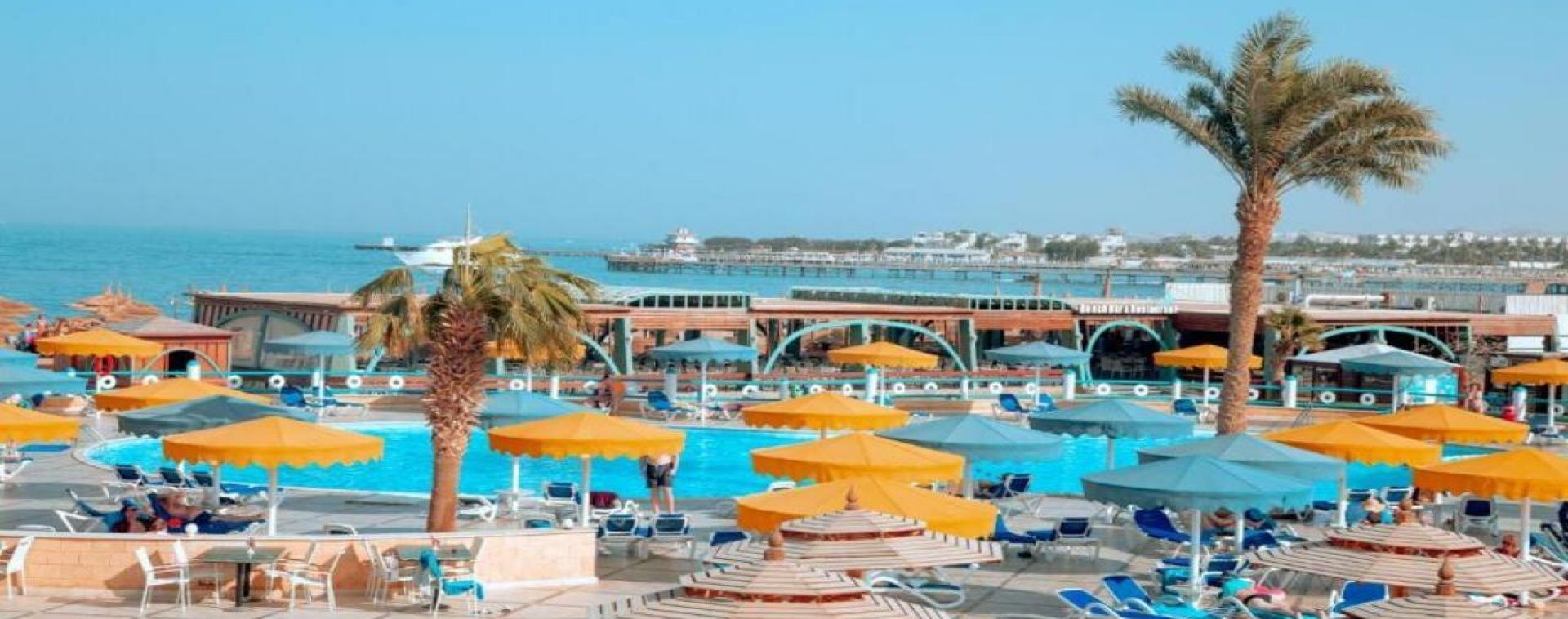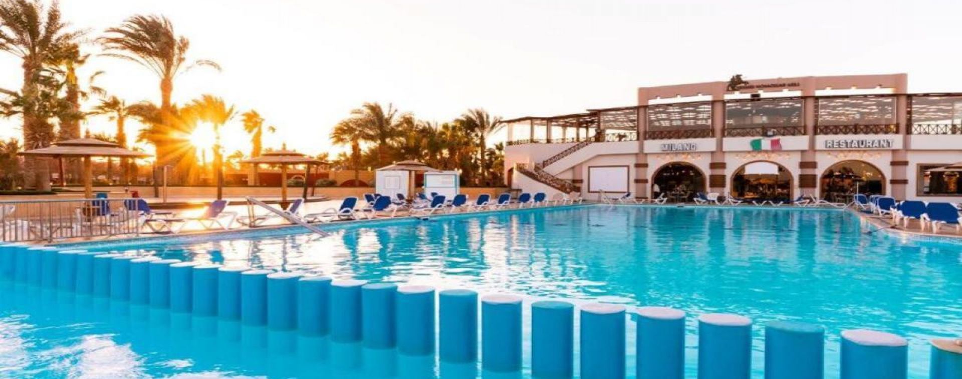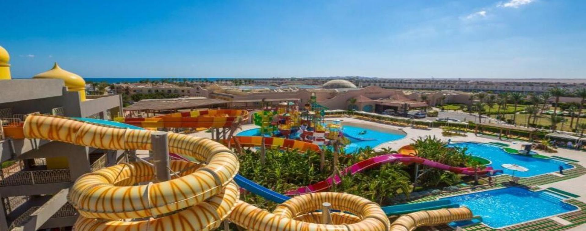 Aladdin Beach Resort 4* се намира на самия бряг на Червено море, в курортната зона на Хургада. Разположен е на около 8–12 км от международното летище и на приблизително 15 км от центъра на града. Хотелът е част от комплекс заедно с съседните Jasmine Village и Ali Baba Palace, с които споделя определени удобства.