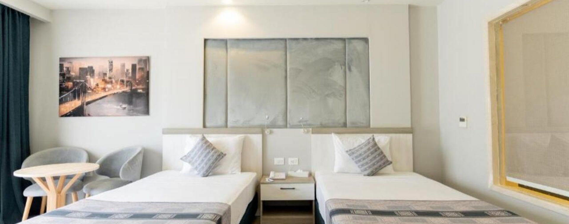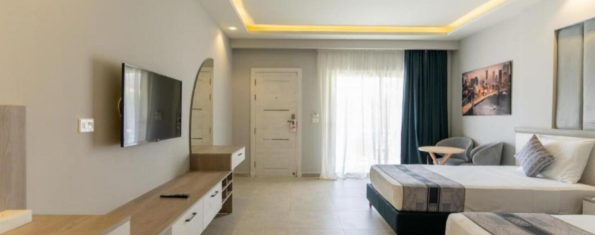Хотелът разполага с общо 439 стаи, разположени в основна 2-етажна сграда (само рецепция), две 2-етажни корпуса и комплекс от 1-етажни бунгала. Standard room (34-38 м2 вкл. баня и тераса); Superior Garden view room (35 м2 ), Superior Pool view room (35 м2), Family Suite (Garden view, 45 м2 вкл. 2 спални с врата), Family connected (Garden view, 65 м2 вкл. 2 спални с врата ). Всички стаи са оборудвани с климатик, телевизор, телефон, баня с душ/вана, сешоар (по заявка на рецепция), минибар, сейф (безплатно на рецепция), балкон. Почистване на стаите и смяна на кърпи - всеки ден, смяна на спално бельо - 3 пъти седмично.