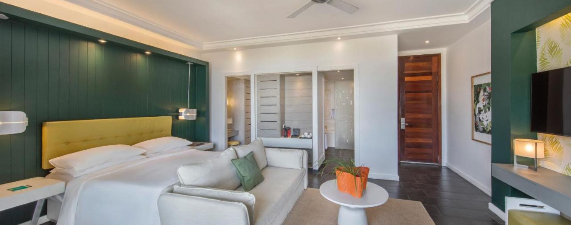 Стилните и просторни стаи с модерен интериор разполагат с балкон и изглед към морето. Имат телевизор с плосък екран, зарядно устройство за iPod, бюро и собствена баня с душ, вана и безплатни тоалетни принадлежности. Някои от стаите са разположени до самия плаж.