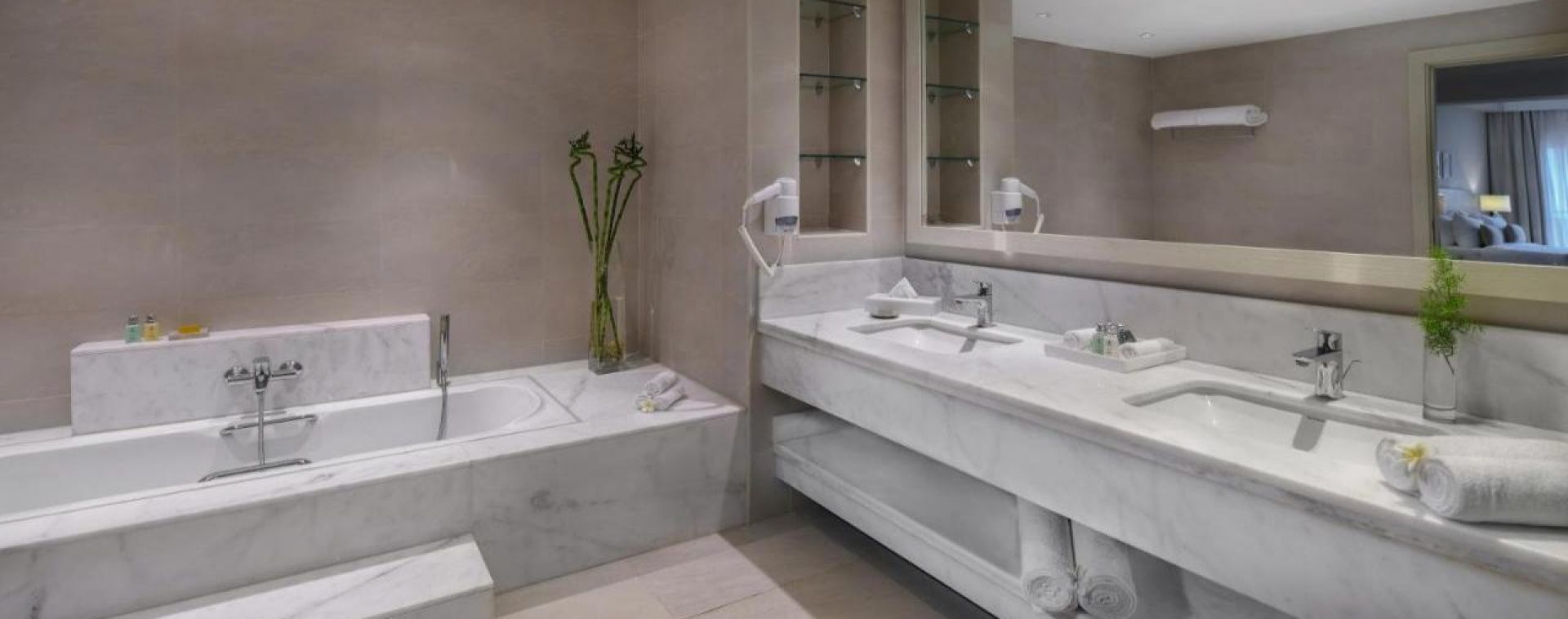 Всички стаи са климатизирани и имат просторен балкон или тераса. Всяко помещение включва плоскоекранен телевизор и кът за сядане. Срещу допълнително заплащане гостите могат да използват минибара. Осигурени са също удобства за приготвяне на чай/кафе и сейф.