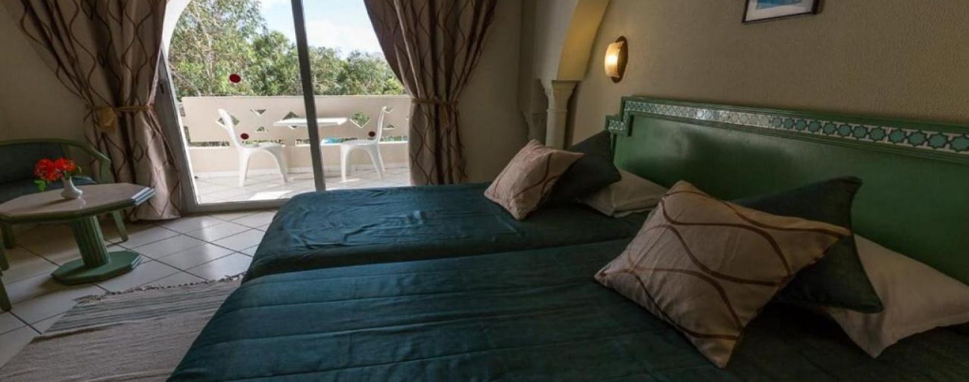 Tunisia Lodge 4* е част от комплекс с два съседни хотела и предлага спокойна атмосфера, обширна градина, открит басейн, достъп до плажа и подходящи удобства за семейна почивка. Работи по концепция
