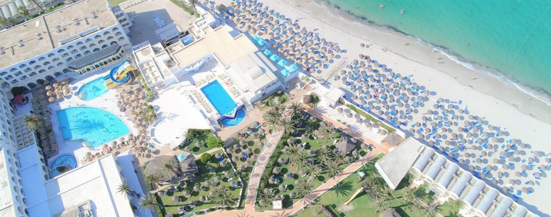 Махдия, директно на дълъг и широк пясъчен плаж с фин бял пясък. Хотелът е разположен на около 2 км от центъра на Махдия и около 50 км от летище Monastir. В близост има магазини, кафенета и местни ресторанти.