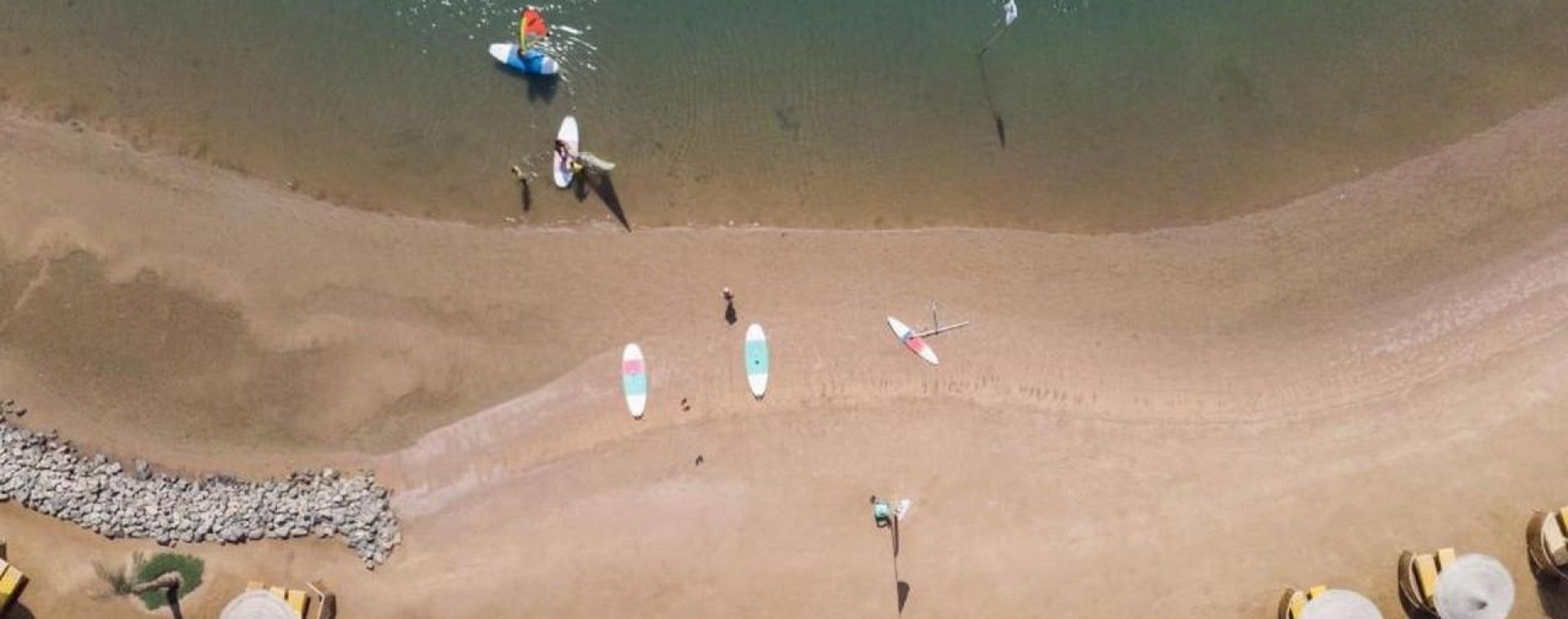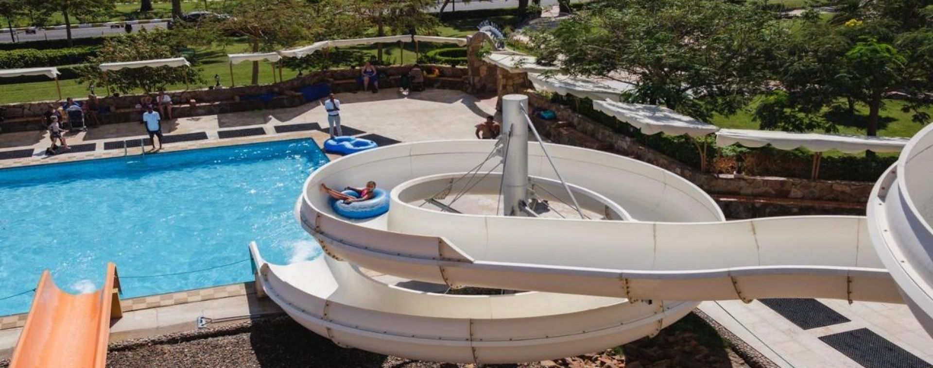 Desert Rose 5* разполага със собствен девствен пясъчен плаж с дължина от 1км, с 40 000 м² природна лагуна със златист пясък. Хотелът предлага на своите клиенти идеална атмосфера за забавления или просто да се насладят на прекрасния ненадминат климат на Червено море. Хотелът разполага с 4 плувни басейна, 1 с олимпийски размери, голям плувен басейн с палуби за слънчеви бани и бар край него, отопляем семеен плувен басейн и детски плувен басейн, специализиран за бебета и малки деца със собствен мини душ и мини столове. Като допълнение Аквапаркът предлага още и 6 водни пързалки.