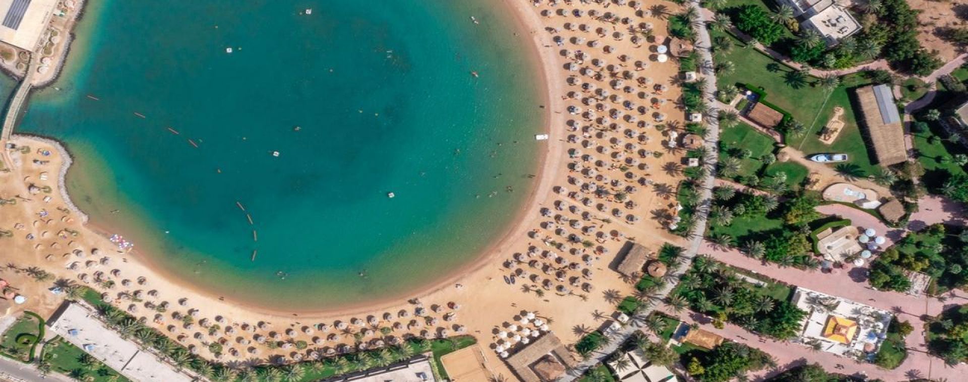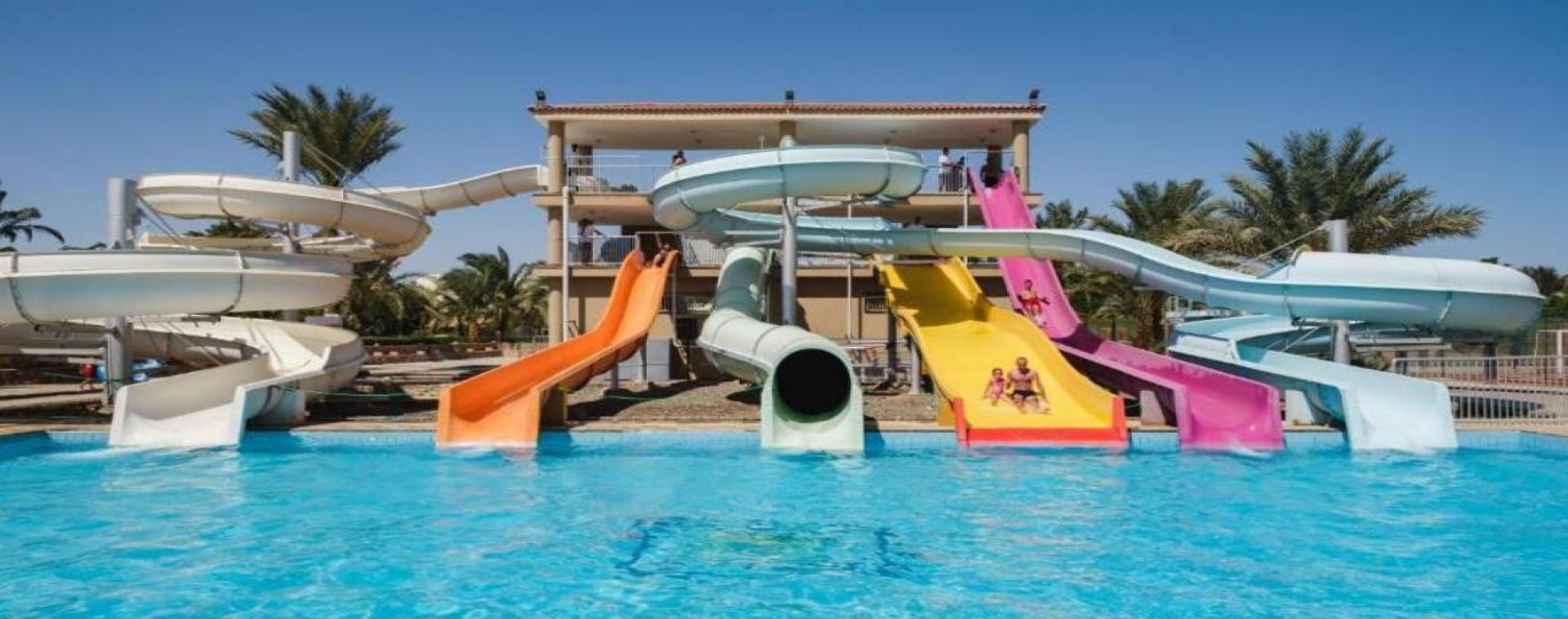 Desert Rose 5* разполага със собствен девствен пясъчен плаж с дължина от 1км, с 40 000 м² природна лагуна със златист пясък. Хотелът предлага на своите клиенти идеална атмосфера за забавления или просто да се насладят на прекрасния ненадминат климат на Червено море. Хотелът разполага с 4 плувни басейна, 1 с олимпийски размери, голям плувен басейн с палуби за слънчеви бани и бар край него, отопляем семеен плувен басейн и детски плувен басейн, специализиран за бебета и малки деца със собствен мини душ и мини столове. Като допълнение Аквапаркът предлага още и 6 водни пързалки.