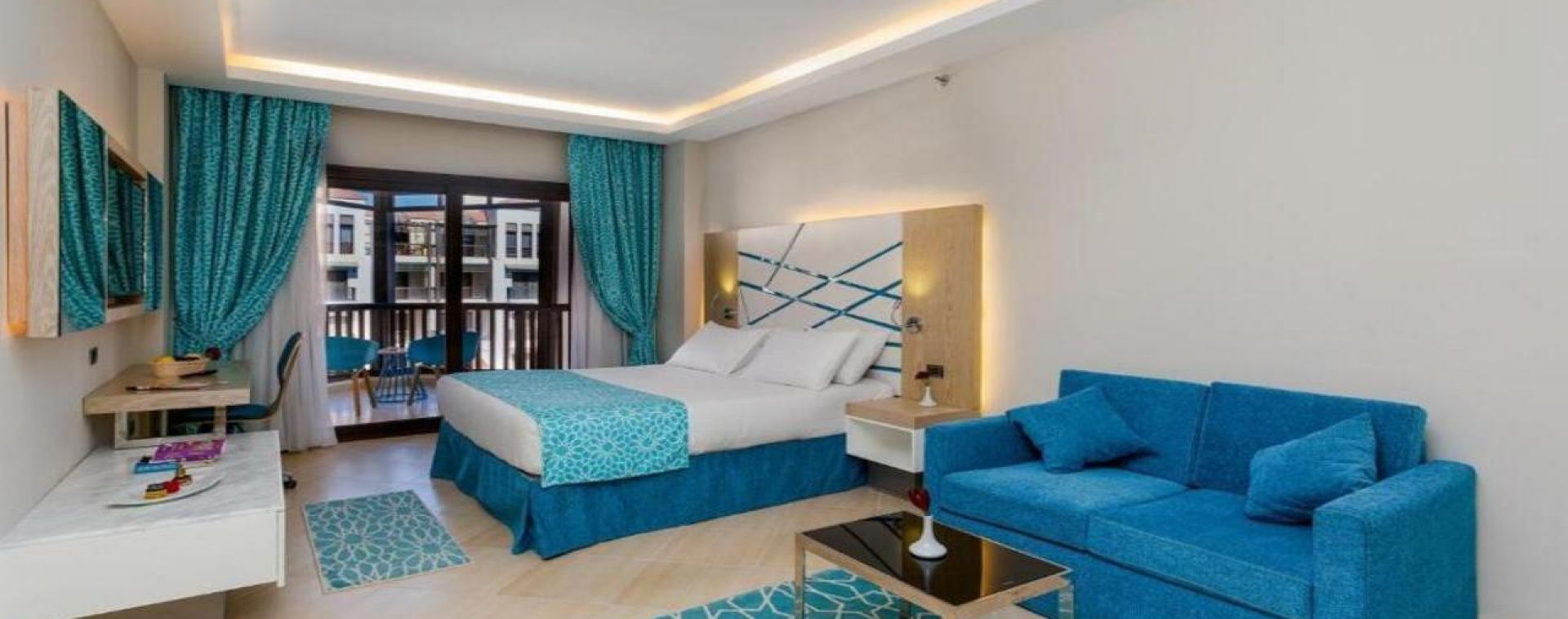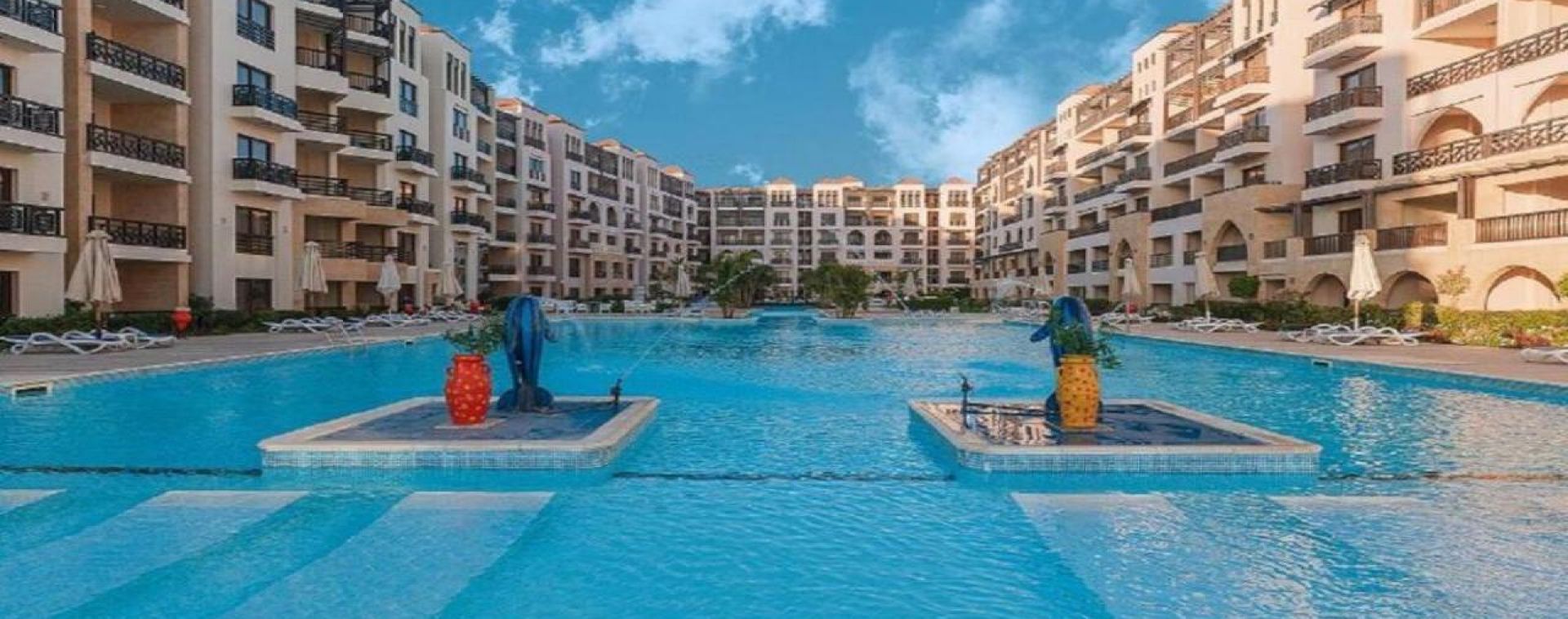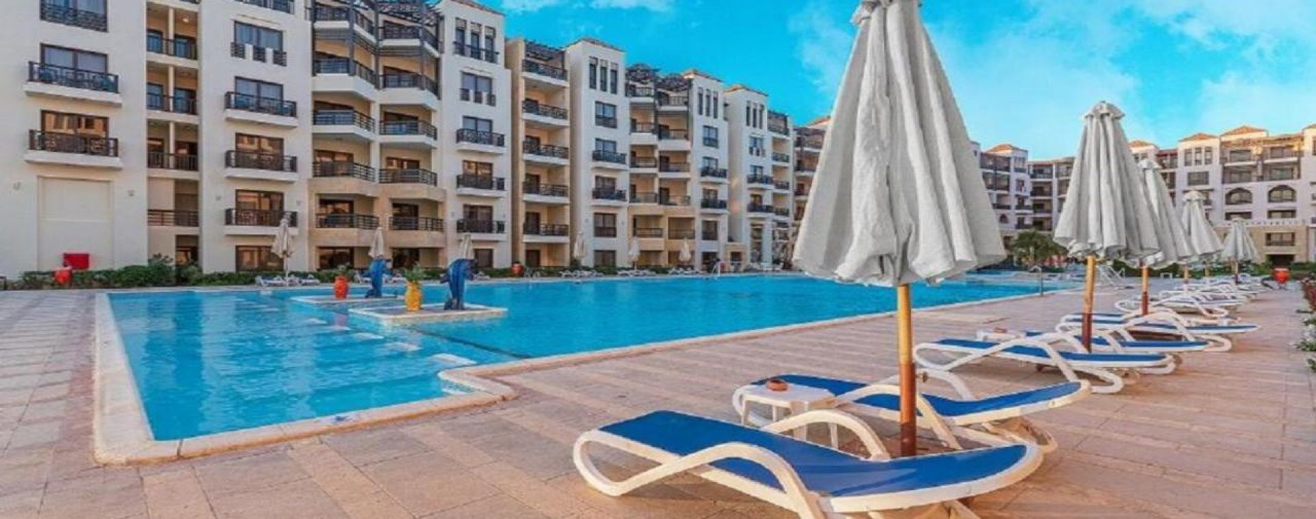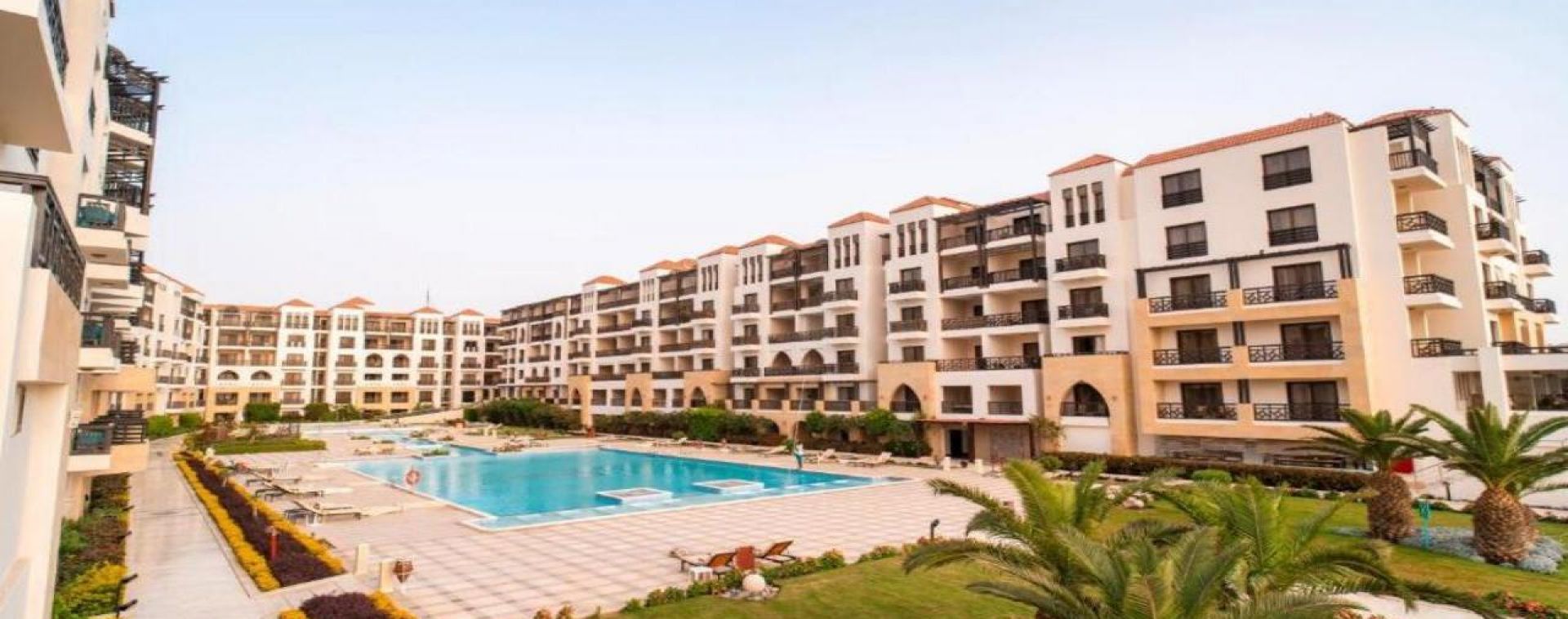Комплексът е построен в арабски стил с модерно обзаведени стаи.