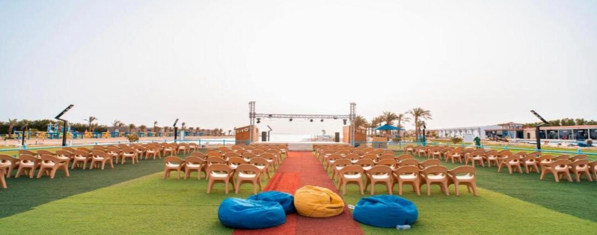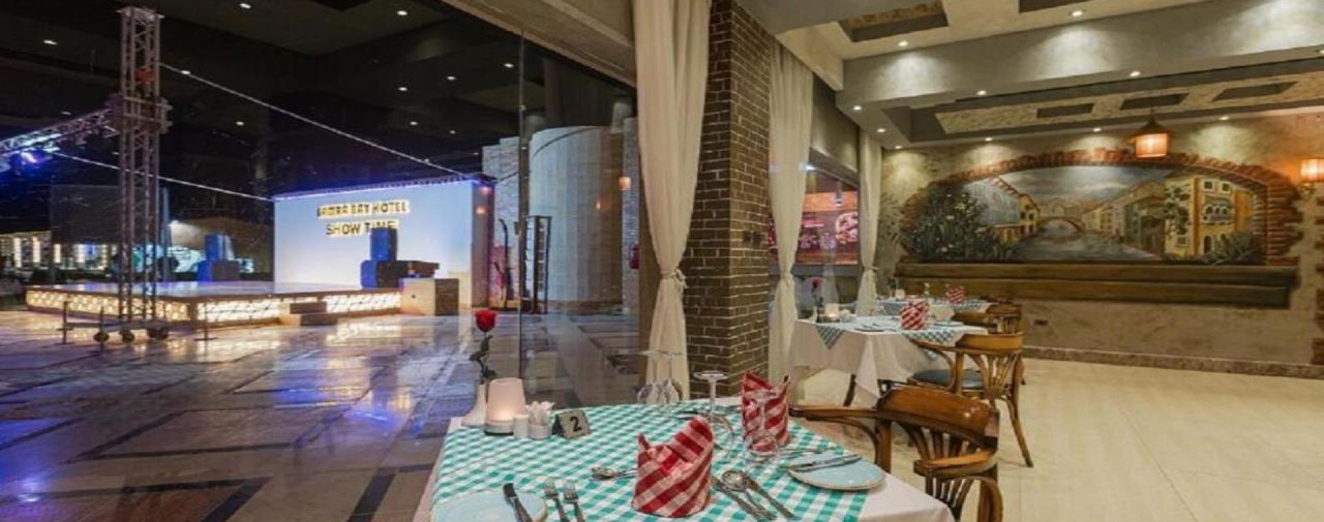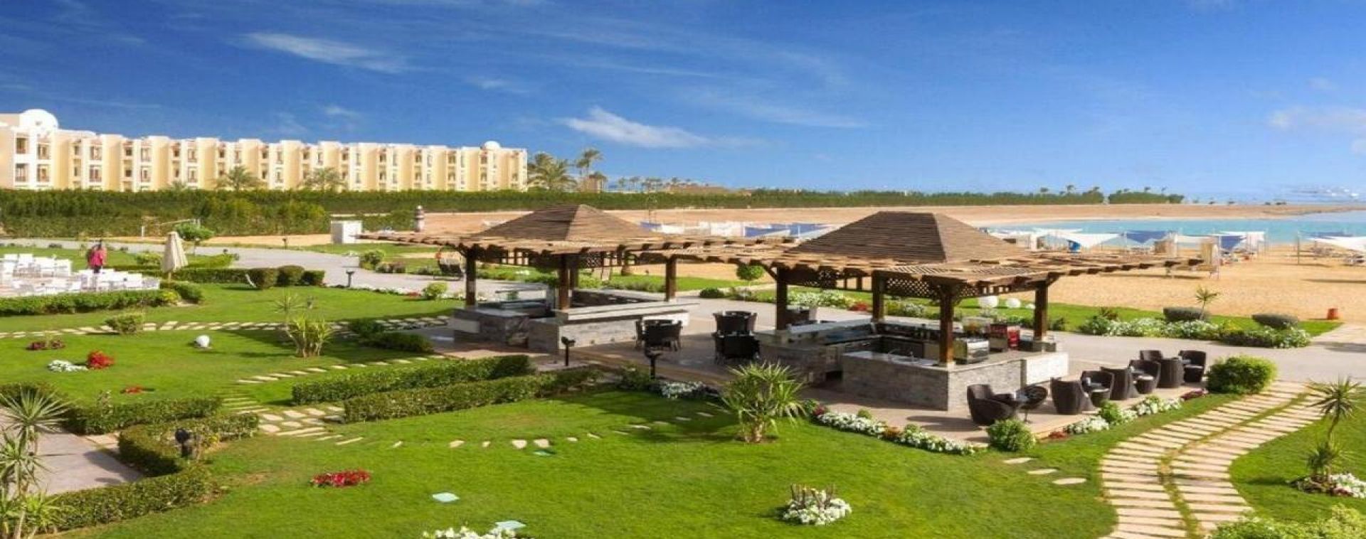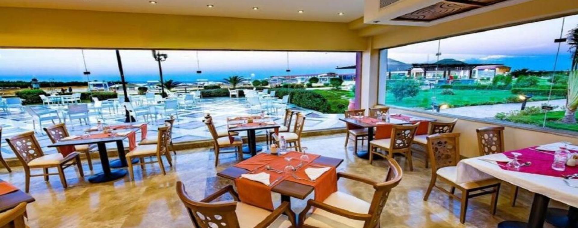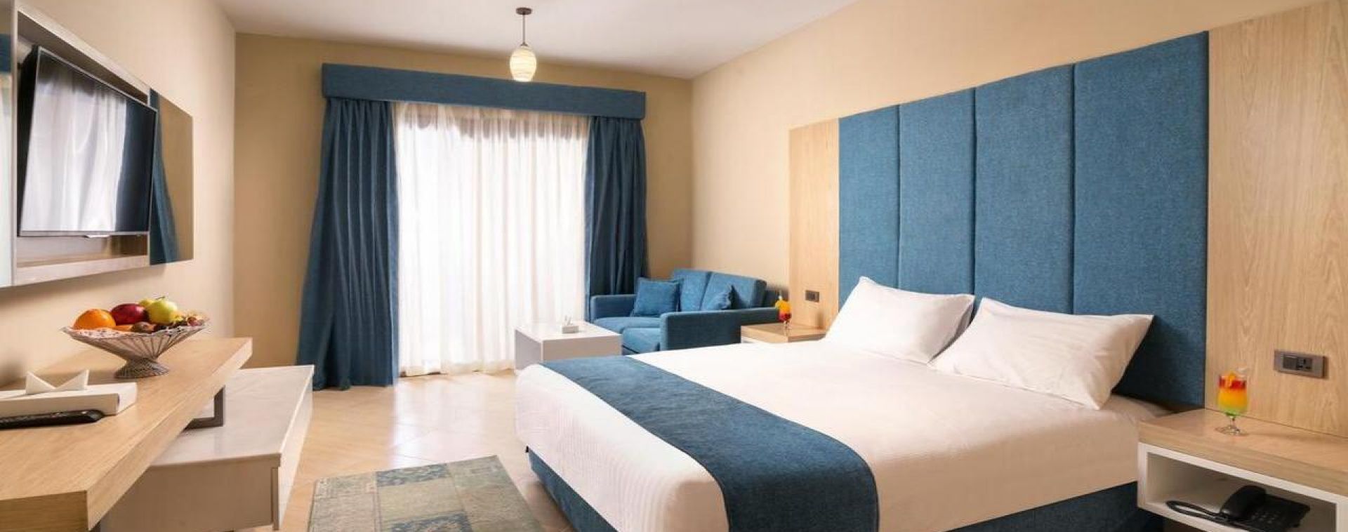 Комплексът е построен в арабски стил с модерно обзаведени стаи.