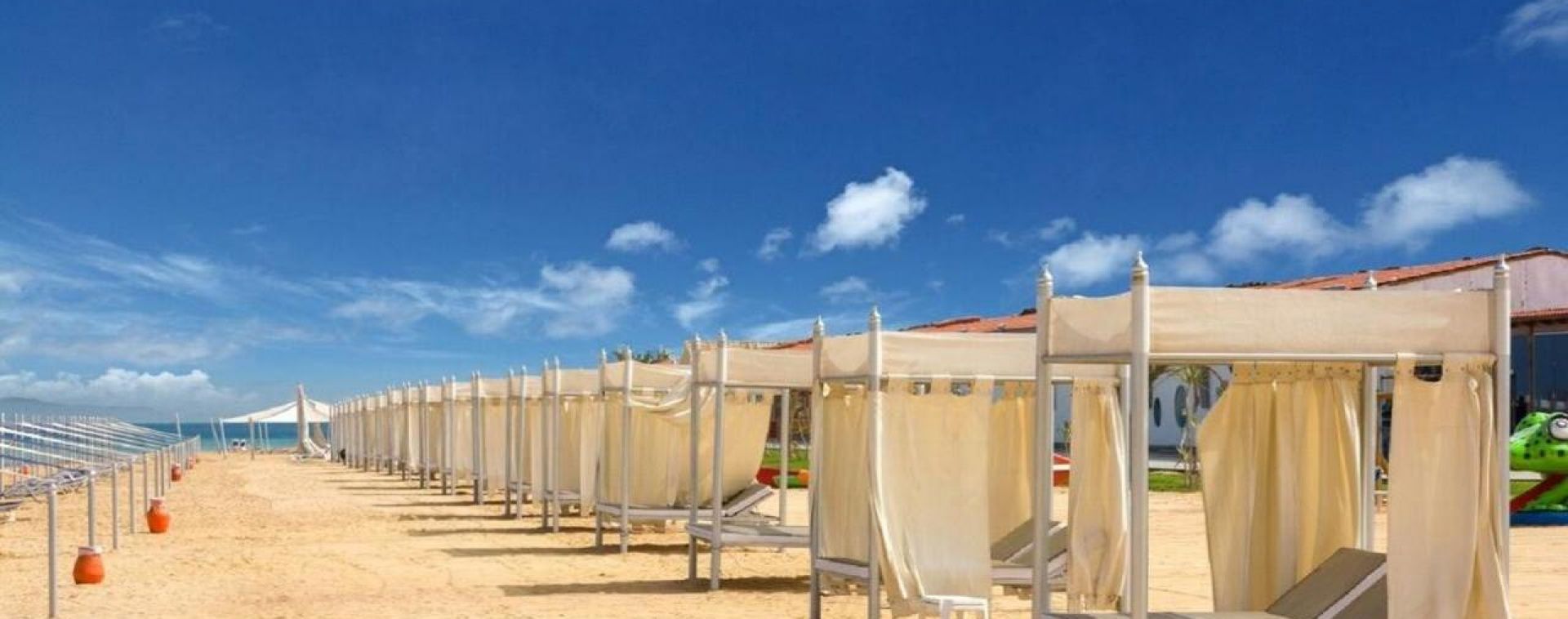 Собствен пясъчен плаж със залив и 3 плувни басейна, включително 1 за деца с чадъри, шезлонги с матраци, плажни огради за защита от вятъра, обслужване от бара, спасители на басейна и на плажа, кърпи за плажа и басейна, табели около басейна;