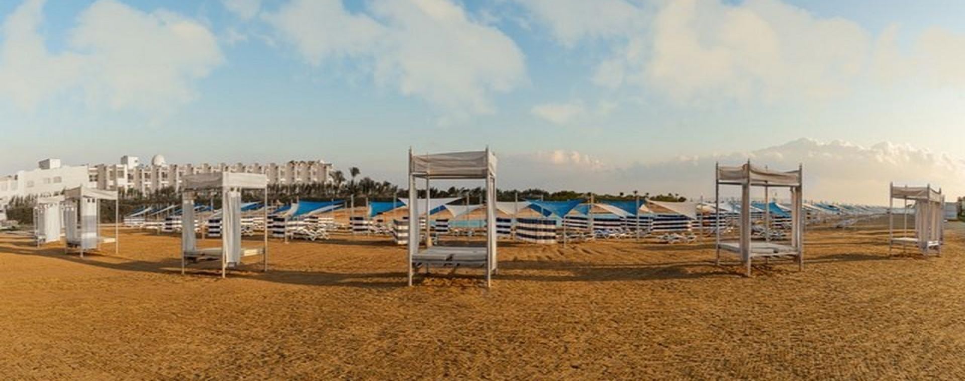 Собствен пясъчен плаж със залив и 3 плувни басейна, включително 1 за деца с чадъри, шезлонги с матраци, плажни огради за защита от вятъра, обслужване от бара, спасители на басейна и на плажа, кърпи за плажа и басейна, табели около басейна;