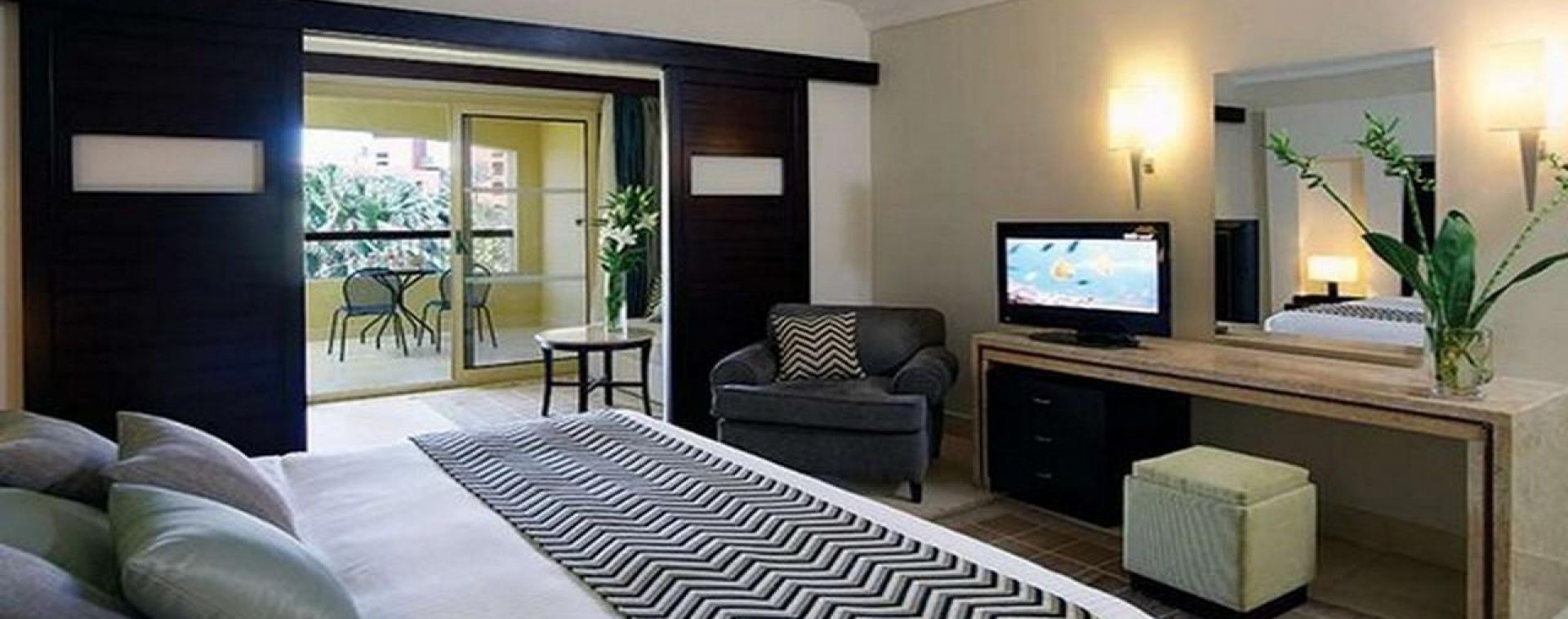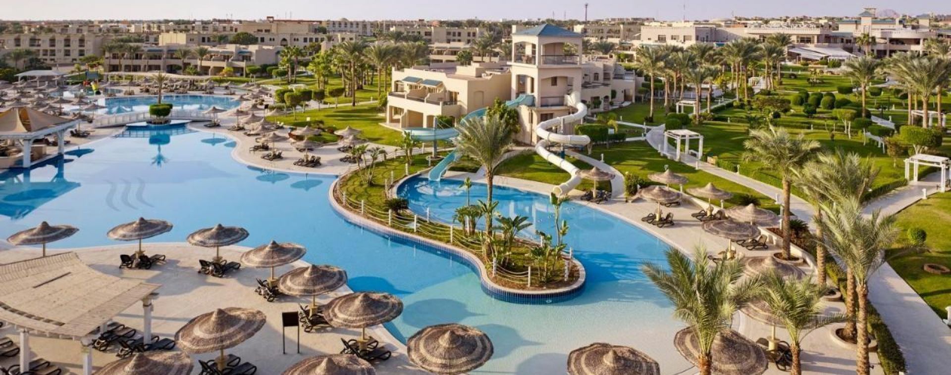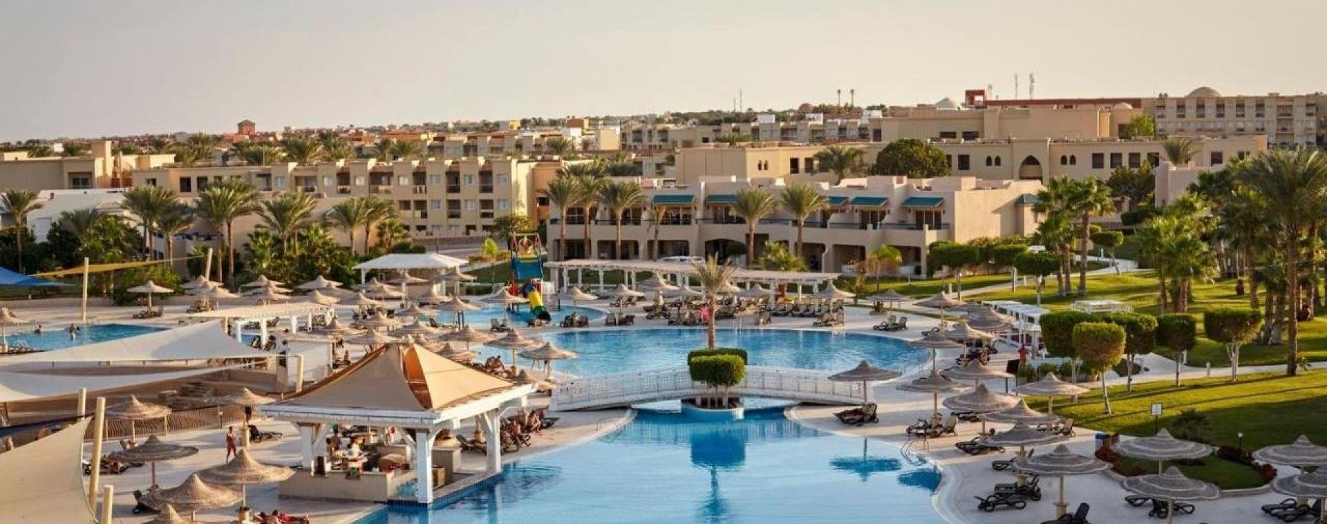 Огромната прилежаща територия на хотела е с красиво озеленяване, четири басейна, два от които отопляеми и широк 300м. пясъчен плаж с понтон и плавно преминаване.Няма риф.