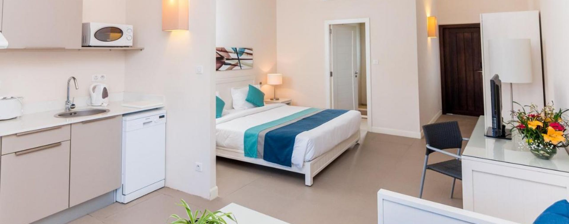 Разполага с общо 102 апартамента, обзаведени практично и удобно. Студио STUDIOS ( 48 – 51 м2 ), Апартаменти 2-ROOM APARTMENTS ( 78 – 90 м2 ), Всички стаи разполагат с напълно оборудван кухненски бокс и с трапезария, както и с климатик, телевизор, сешоар и ютия.