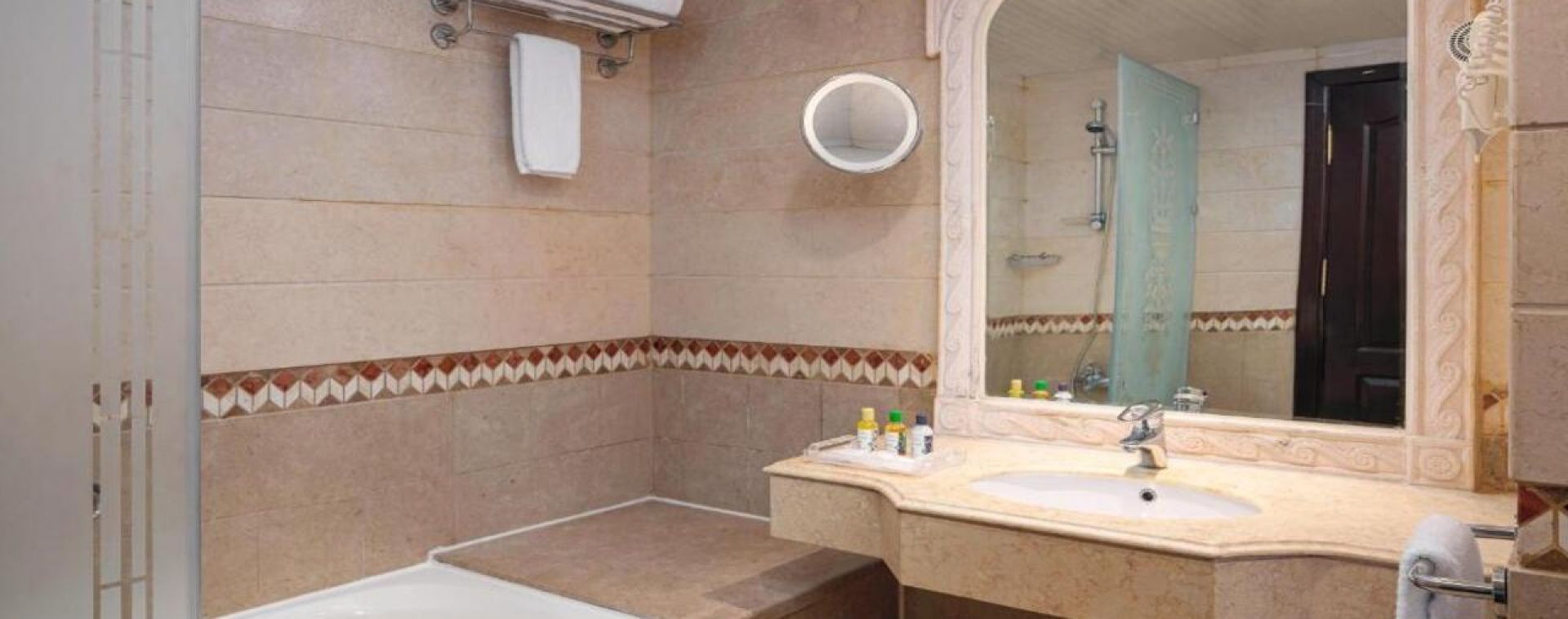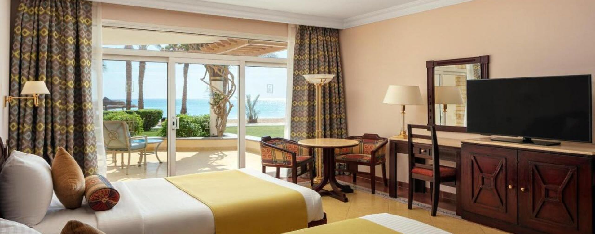 Хотелът е луксозен комплекс с ориенталска архитектура и просторна градина. Разполага с основна сграда и няколко допълнителни крила, предлагащи разнообразие от удобства. Подходящ е както за семейства с деца, така и за двойки, търсещи спокойна почивка. Собствен, с коралов риф. Чадъри, шезлонги и матраци на плажа и при басейна - безплатно. Плажни кърпи – безплатно.