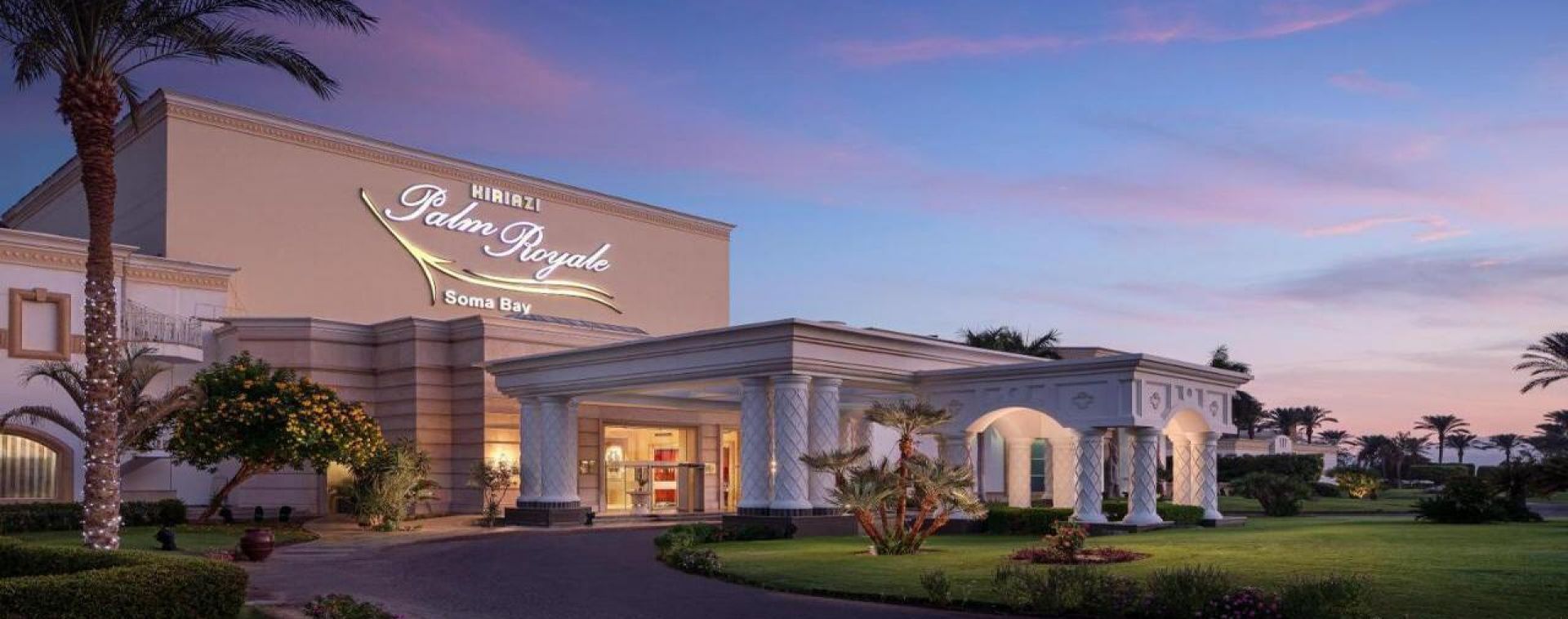 Palm Royale Resort се намира в залива Сома Бей, на около 50 км южно от летището в Хургада. Хотелът е разположен на просторен плаж с фин златист пясък и предлага изглед към кристално чистите води на Червено море. Районът е известен с уединението, луксозната атмосфера и добрите условия за водни спортове.