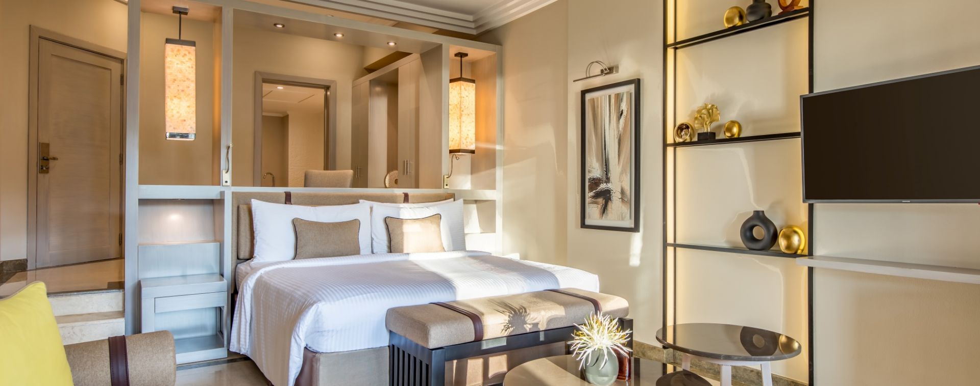 Хотелът разполага с общо 210 стаи, от които 100 Deluxe Room (на приземен/първи етаж, 56м2), 20 Deluxe Room with Private Jacuzzi (с джакузи, на втори етаж, 56 & 33м2), 40 Prestige Room Ocean View (с изглед океан, на приземен/първи етаж, 56м2), 40 Two Bedroom Family Room (2 стаи, 1 баня, на приземен/първи етаж, 72 м2), 10 Presidential Duplex Suite (на втори етаж, тип мезонет, 300м2). Всички стаи са оборудвани с климатик, телевизор, телефон, баня с душ/вана, сешоар, халат/чехли, сет за кафе/чай, сейф, балкон/тераса. Почистване на стаите и смяна на кърпите - всеки ден, смяна на спалното бельо - 2 пъти седмично. Обзаведени в съвременен и луксозен интериор, с глезещи удобства, създаващи комфорт и уединение.