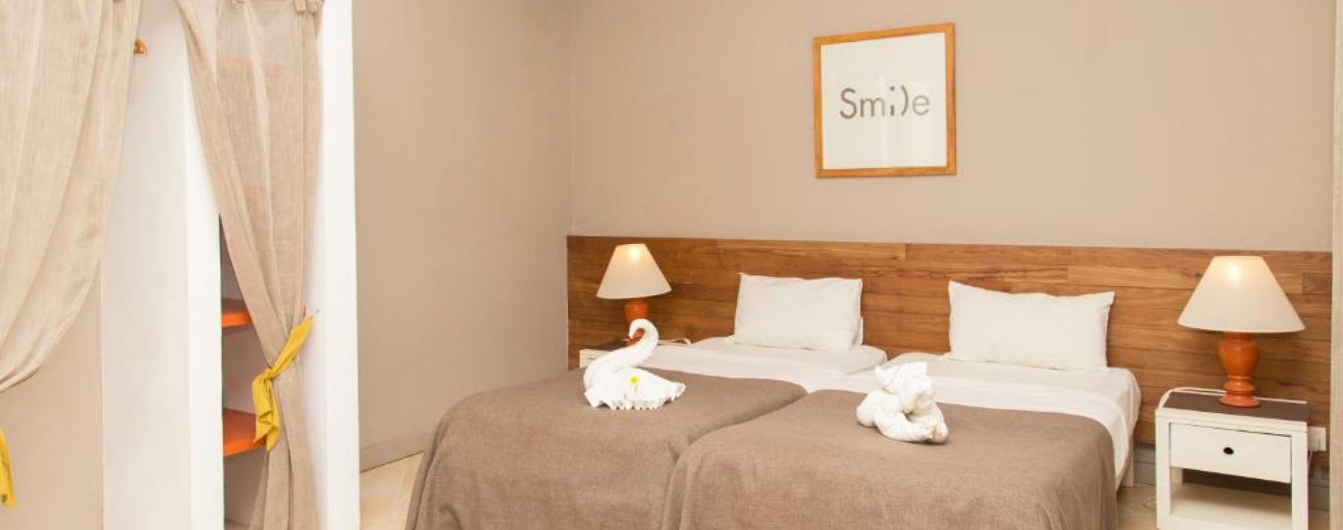 Хотелът разполага с общо 50 стаи, от които 32 Standard room (24 м2), 15 Family room (2 спални, 1 баня - 33 м2). Всички стаи са оборудвани с климатик, телевизор, телефон, баня с душ, сешоар, сет за кафе/чай, мини-бар, сейф. Почистване на стаите и смяна на кърпите - всеки ден, смяна на спалното бельо - 2 пъти седмично. Светли и модерни стаи със свежи оранжеви нюанси, с минималистичен дизайн, предлагащи комфортен престой.