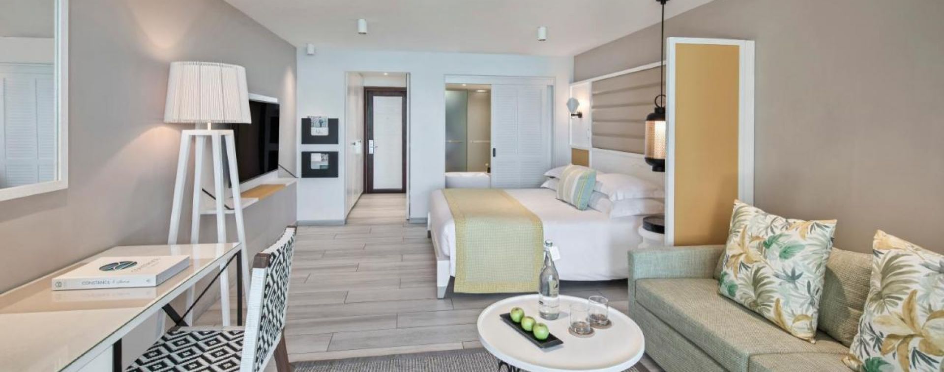 7 ресторанта - основен ресторант La Citronnelle с тематични вечери и live cooking, азиатски ресторант Indigo, ресторант с традиционна местна кухня до голф игрището Deer Hunter, ресторант с креолска кухня на плажа LAKAZE, средиземноморски гурме ресторант на плажа La Spiaggia, винарна Blue Penny Cellar, снек ресторант до голф игрището Le Swing, 6 бара - The Bar, The Blu Bar, LAKAZE bar, La Spiaggia bar, Deer Hunter bar, Le Swing bar, 4 открити басейна, един от които отопляем целогодишно, 24-часова рецепция, конферетни зали, бутици, СПА център със сауна, парна баня, джукузи. Безплатни услуги: тенис на маса, боулинг, мини голф, волейбол, аеробика, йога, пилатес, аква джим, фитнес. Платени услуги: масажи и процедури в СПА центъра, водни спортове, тенис, рум сървиз, сертифициран център по гмуркане, колелета и кола под наем, химическо чистене и пране, лекар на повикване. За децата: детски клуб Constance Kids Club, детска площадка, детски басейн. Плаж: собствен, с фин бял пясък и дължина от 2 км. Чадъри и шезлонги на плажа и при басейните - безплатно.