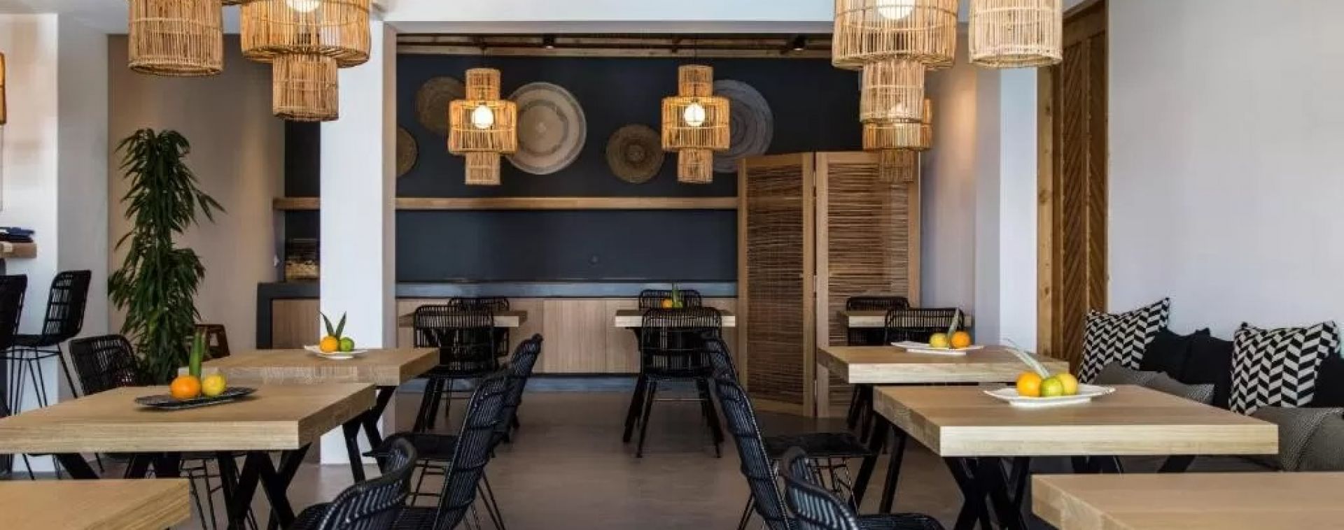 Разположен в космополитния град Миконос, на 800 метра от старото пристанище.