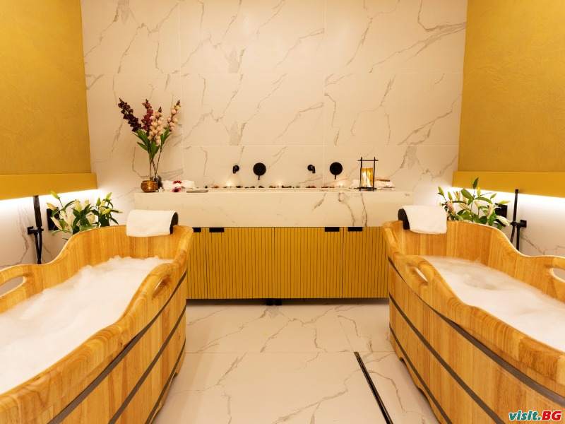 Истинско преживяване за двама в спокойна и уединена обстановка в компанията на свежи плодове, вино и специална селекция от висок клас козметична грижа за коса и тяло. Попитайте на рецепция за тази допълнителна услуга.