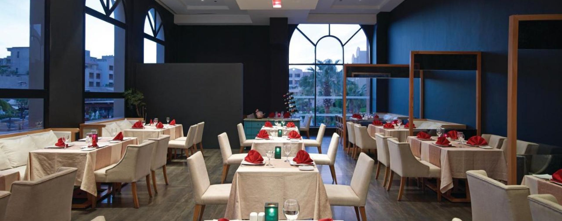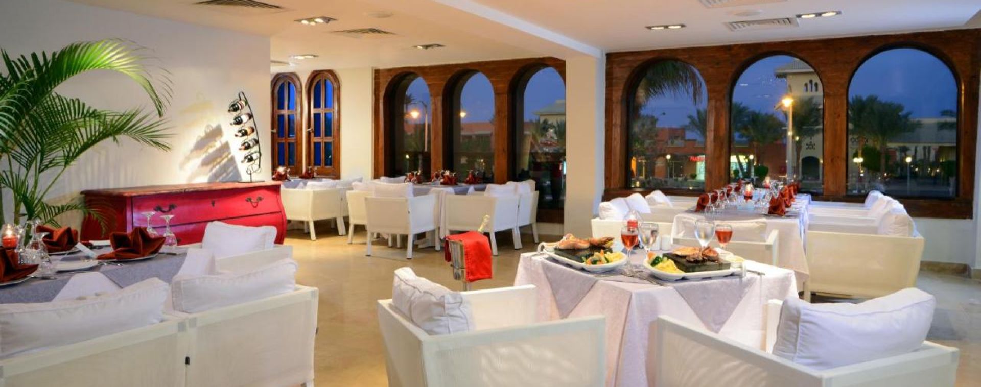 Основен ресторант, 3 а-ла-карт ресторанта (американски, азиатски, барбекю – срещу заплащане),4 бара, 2 открити басейна,аквапарк,бумеранг, мързелива река, СПА център, конферентна зала, паркинг.