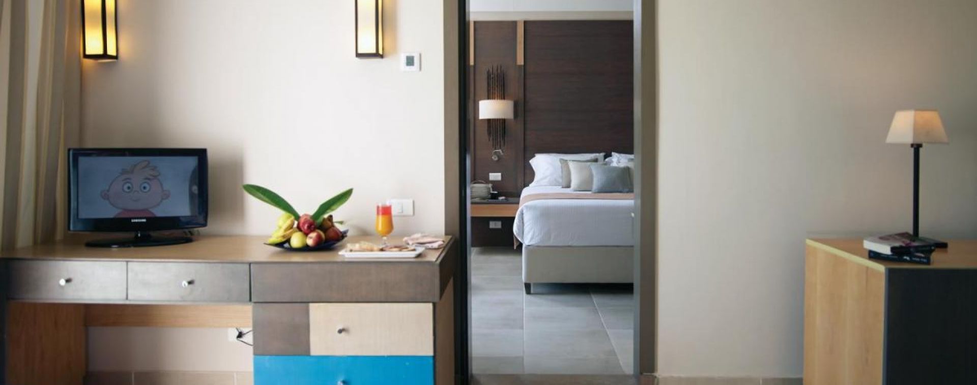 71 Standard room (32 м2), 76 Family room (1 спалня, 1 хол, 1 баня - 44 м2), 7 Hotel suite room (1 спалня, хол, 1 баня - 91 м2), 32 Swim Up room (42 м2) , 24 Family Superior, Kids Den room ( 2 спални, 1 баня - 54 м2).