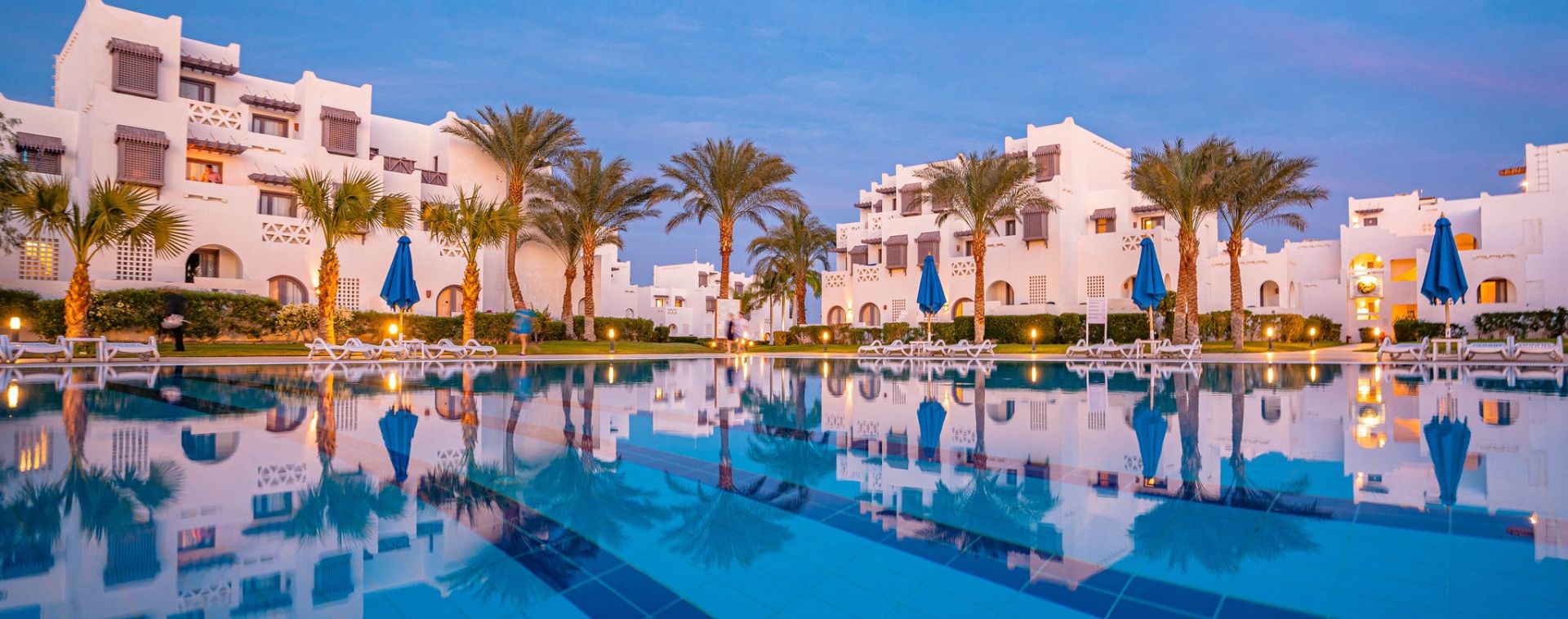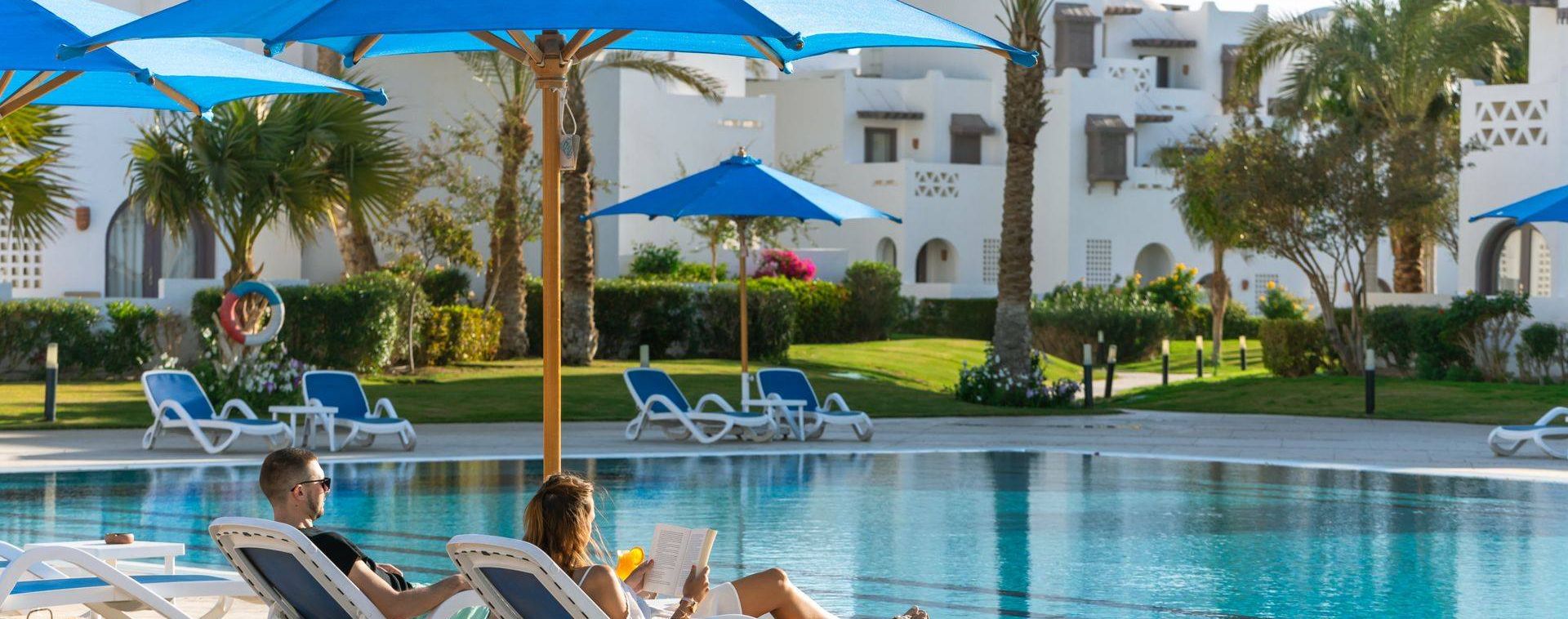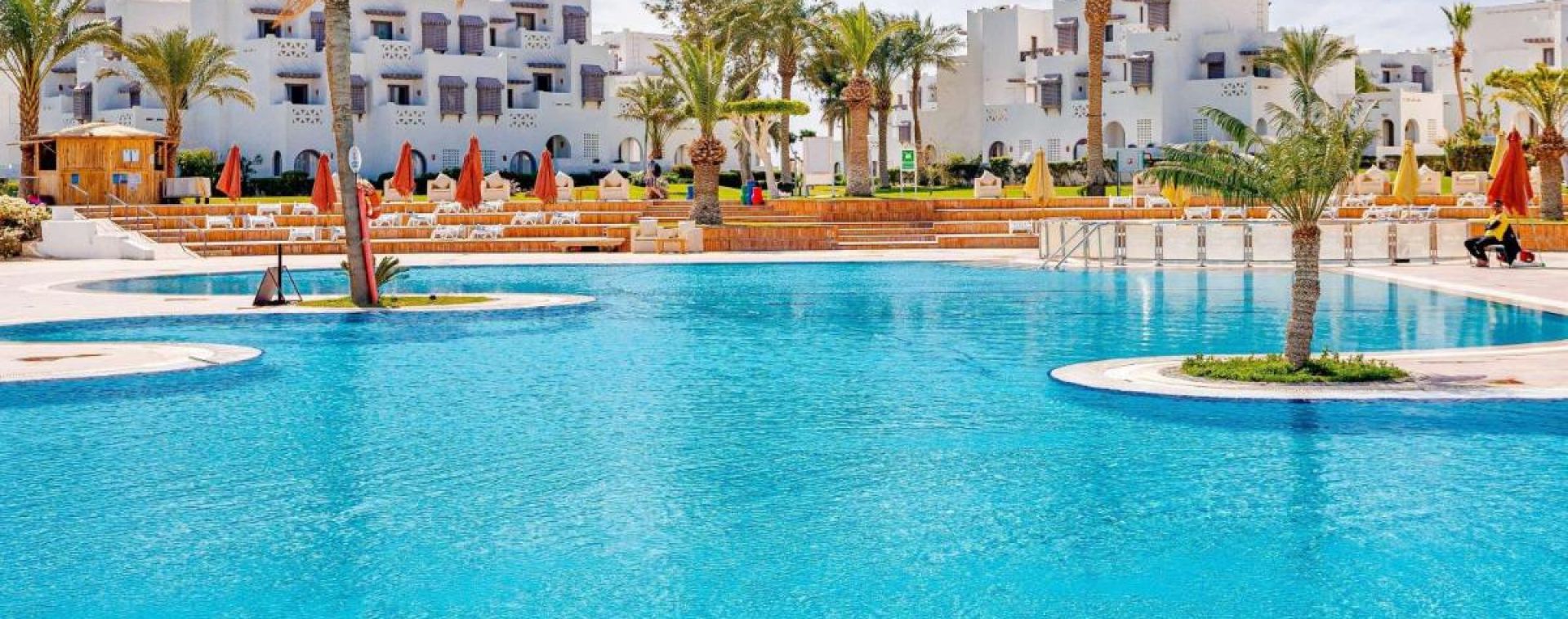 Намира се на 8 км. от летище Хургада, на 12 км. от центъра на Хургада, на брега на морето.
