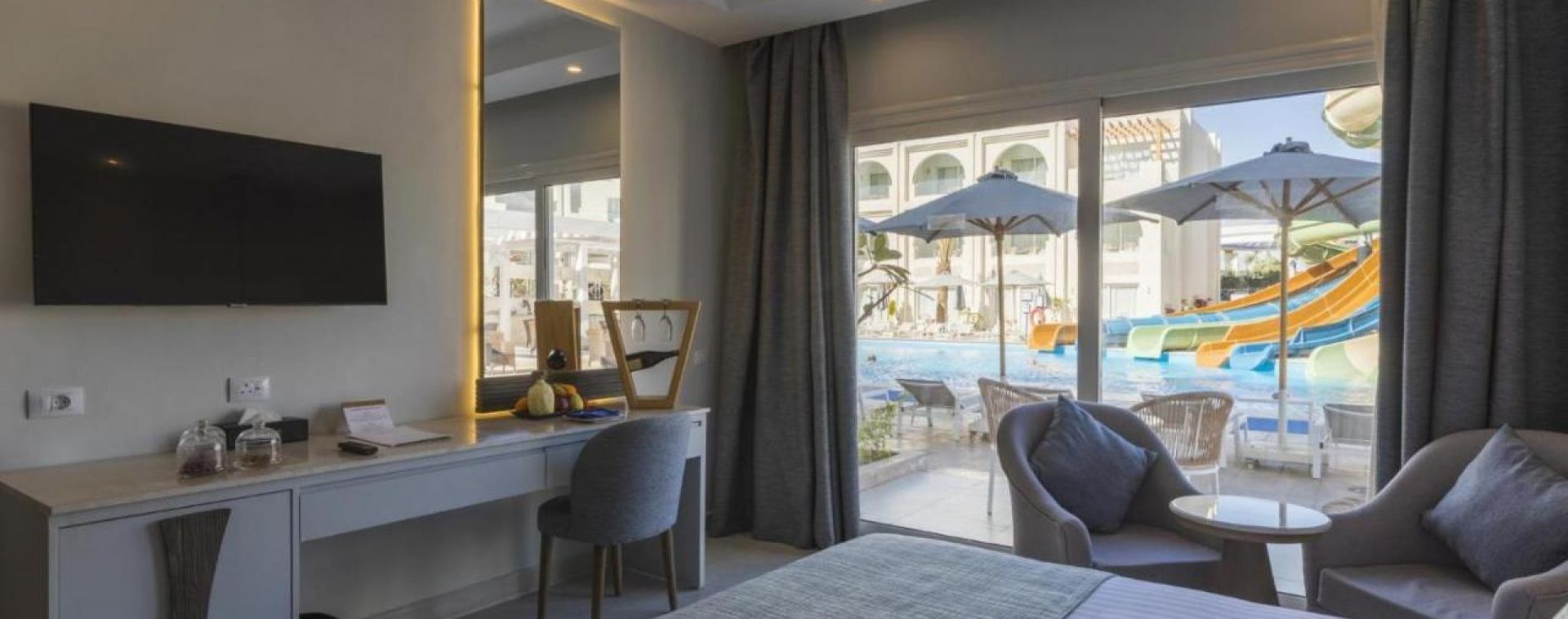 Основен ресторант, 7 а ла карт ресторанта (италиански, барбекю, египетски, азиатски, диетичен, стек, морски-платен), 8 бара, 6 басейна, дневна и вечерна анимация, амфитеатър, банкомат, магазини, аква парк с 6 водни пързалки, денонощна рецепция, асансьор в основната сграда, СПА център, конферентна зала, анимация, жива музика.