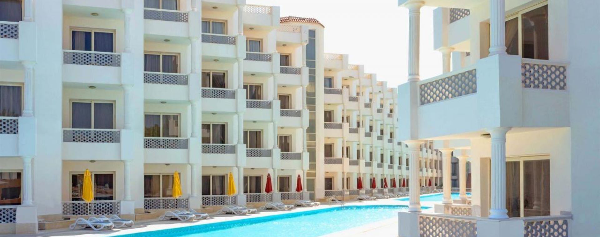 Намира се на 10 км от летище Хургада, на 25 км от центъра на Хургада, на 100 м от брега на морето.