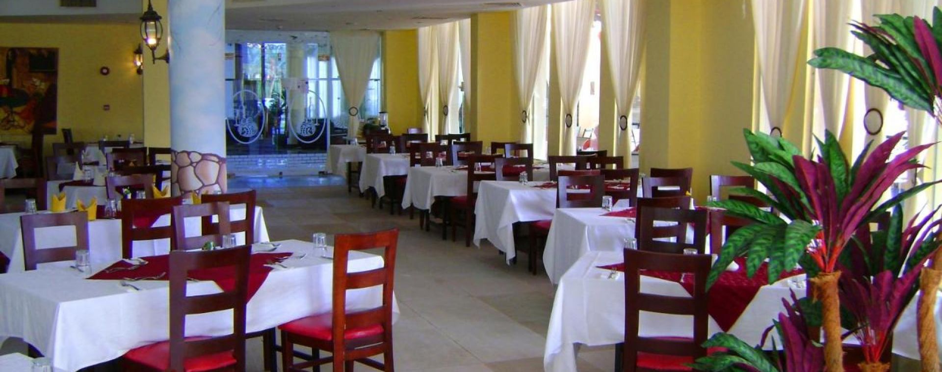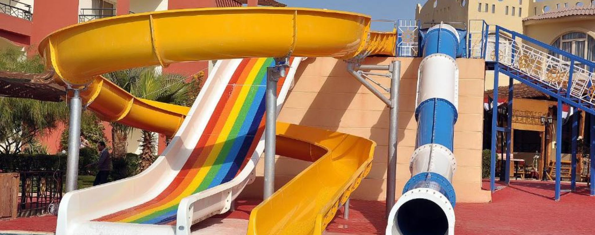 Основен ресторант, а-ла-карт ресторант с морска и италианска кухня (срещу заплащане), 3 бара, 2 открити басейна, 3 водни пързалки, вечерна анимация, магазини.