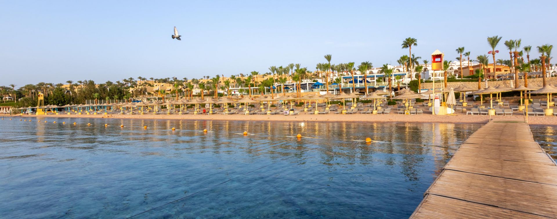Собствен, пясъчен и коралов с дължина 300 м, риф и понтон. Чадъри и шезлонги на плажа и при басейна - безплатно. Плажни кърпи - безплатно.