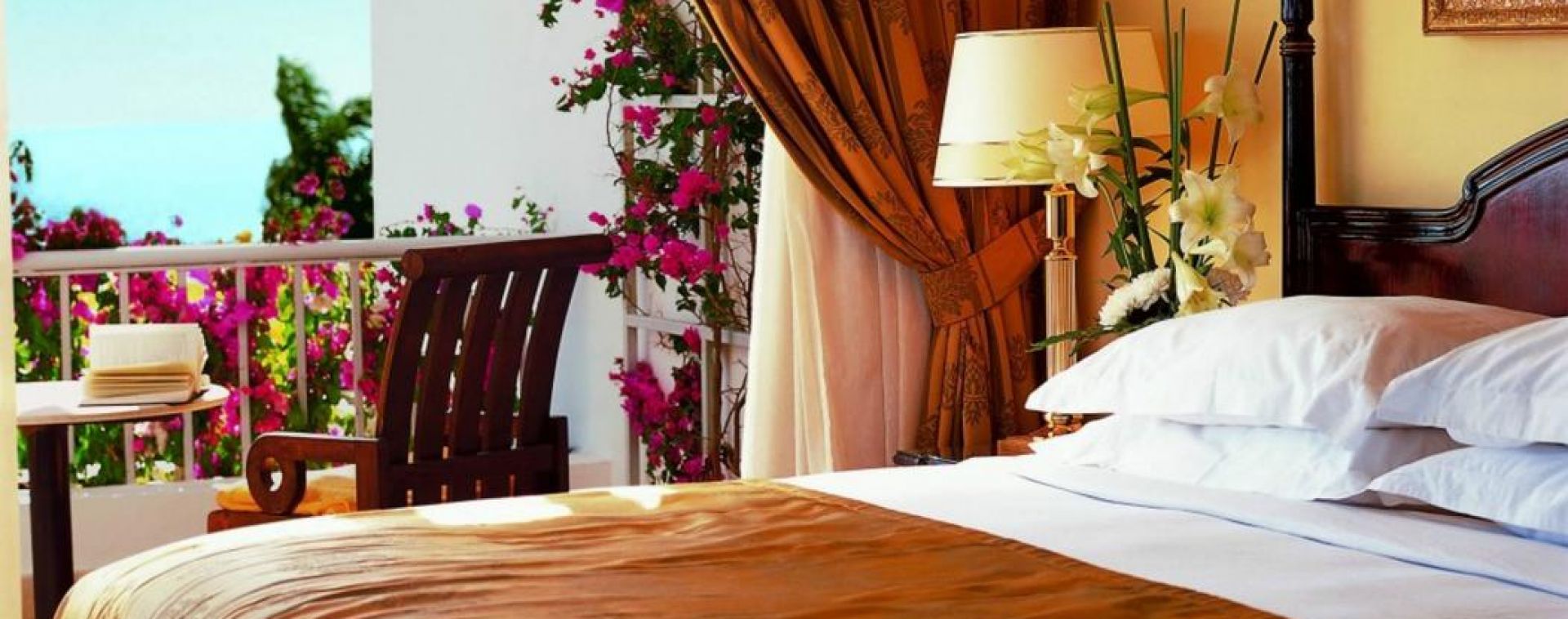 VILLAS –( на 2 етажа: Royal Presidential Suit, 1 Royal Executive Suit и 2 Royal rooms); Hooneymoon Suit (1 спалня, 1 хол. 1 баня, 2 балкона 100 кв.м.), Junior Suit (60 кв.м.).