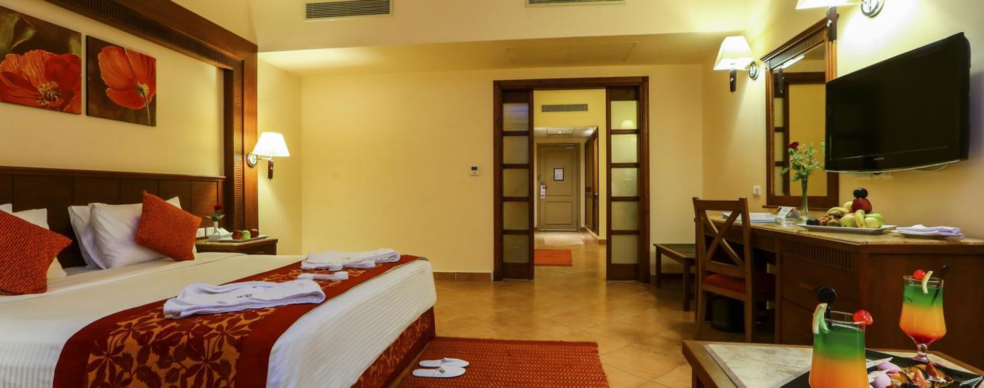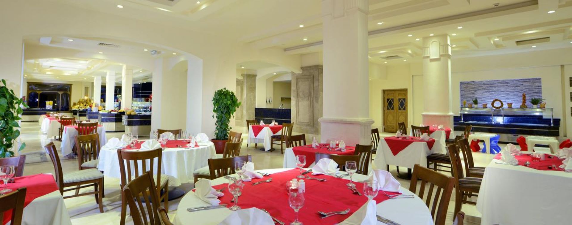 Основен ресторант, 2 а ла карт ресторанта (италиански и индийски – срещу заплащане/с предварителна резервация, съгласно концепцията на хотела/1 безплатно посещение на ресторантите при минимум 7 нощувки), 4 бара (1 работещ 24 h), 3 открити басейна, аквапарк с 10 пързалки за възрастни и 12 за деца, шатъл бус до Наама бей, СПА център, анимация, банкомат, магазини.
