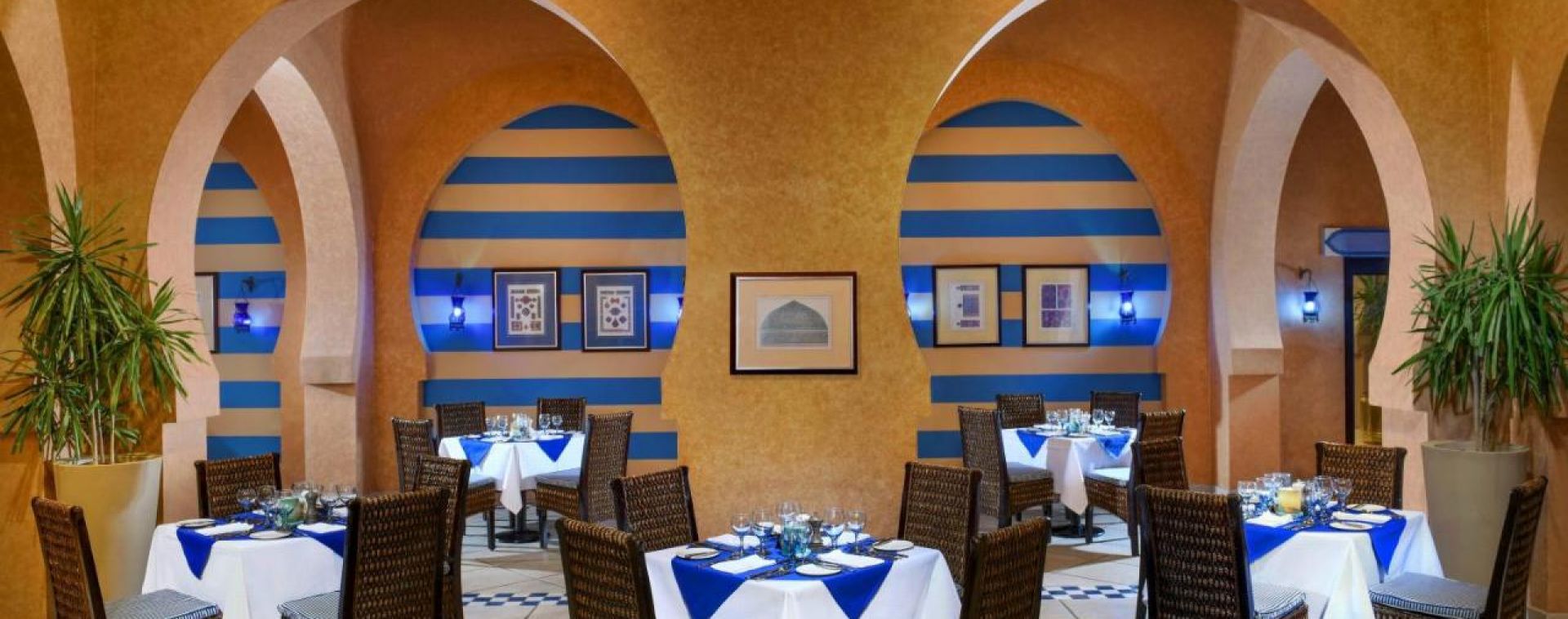 Основен ресторант Rehana, а ла карт ресторант Sayadeya (срещу заплащане/с предварителна резервация, съгласно концепцията на хотела/1 безплатно посещение при минимум 7 нощувки), 3 бара, 2 открити басейна (единият от които е отопляем), магазини, банкомат.