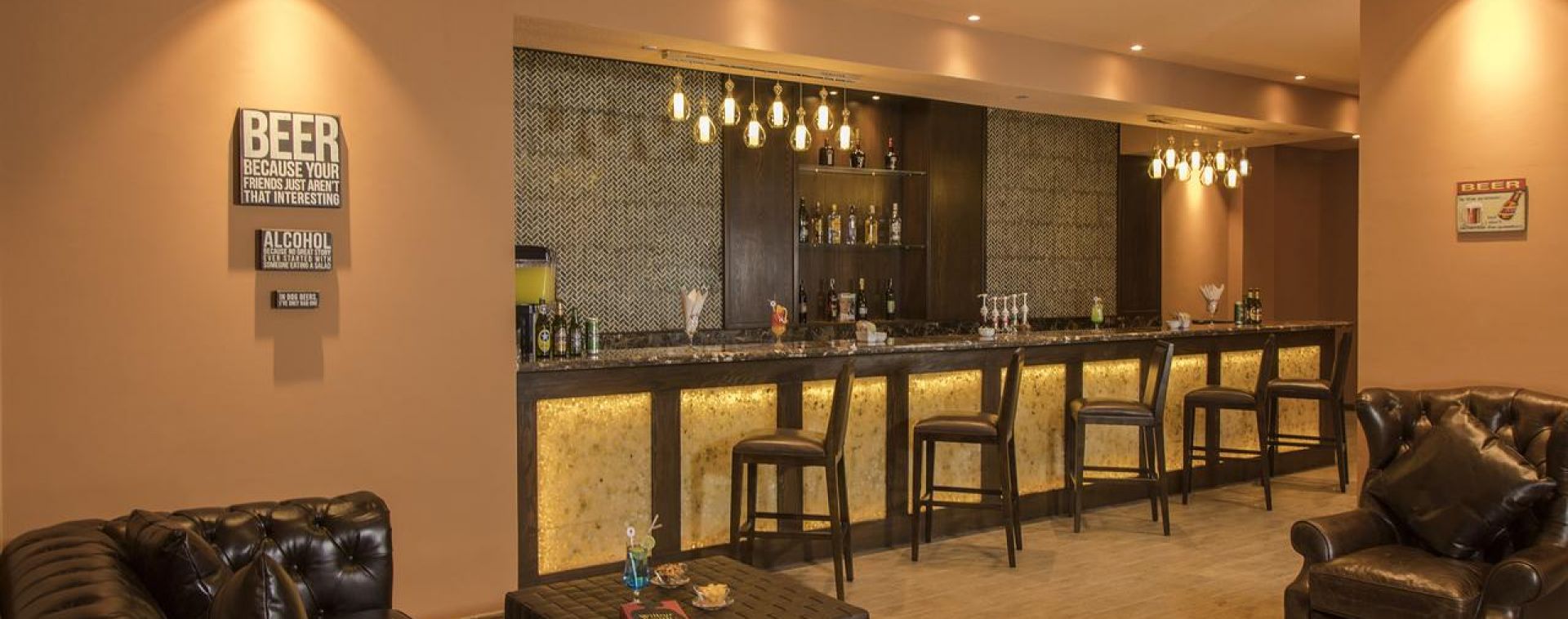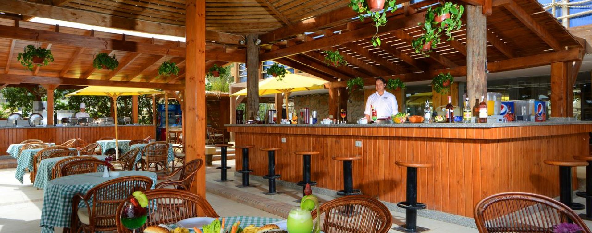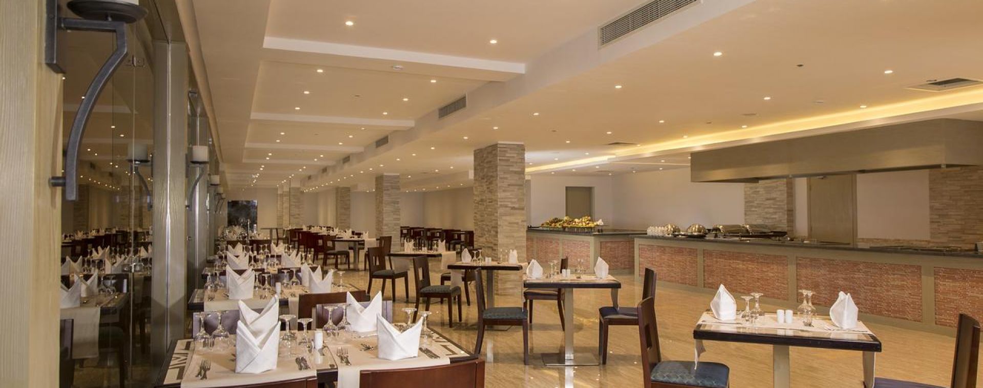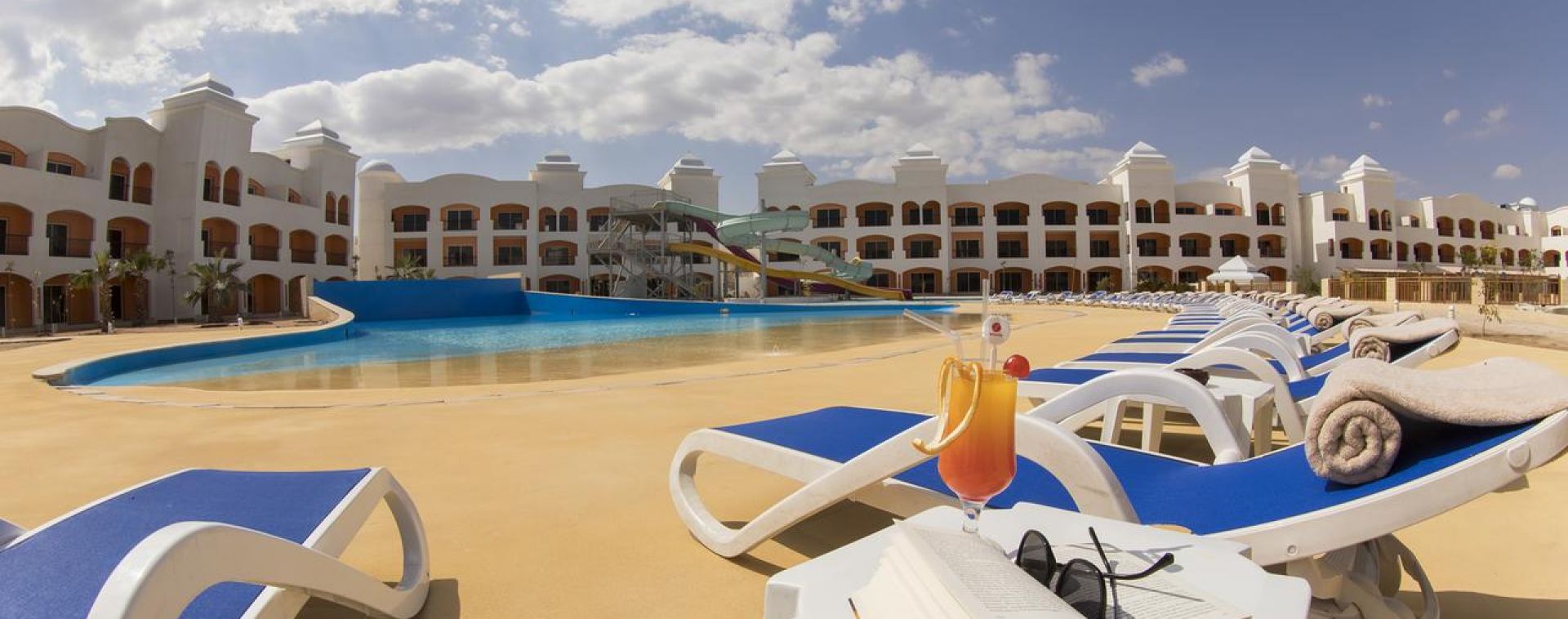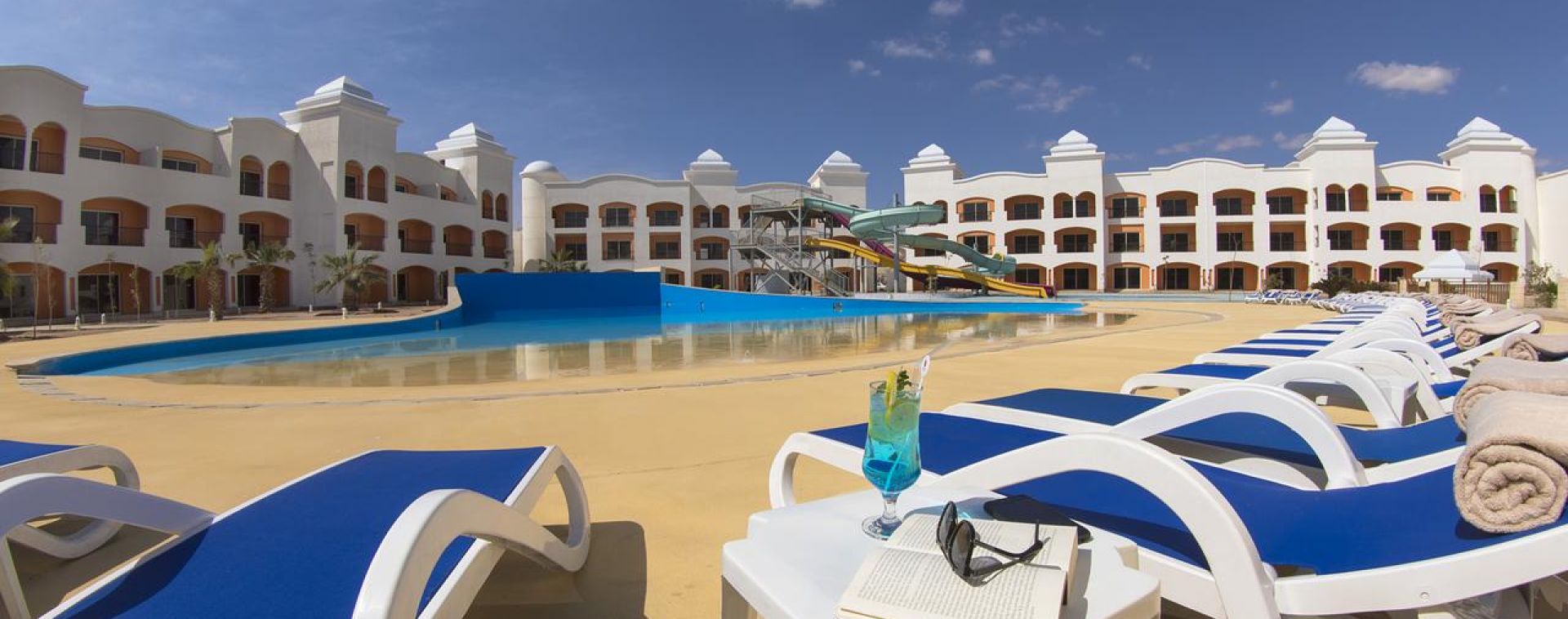 Основен ресторант, ресторант на плажа, лоби бар, бар басейн, английски пъб, 2 открити басейна (отопляеми), басейн с вълни, аквапарк, дневна и вечерна анимация, банкомат, рум сървиз, СПА център, конферентна зала, денонощна рецепция.