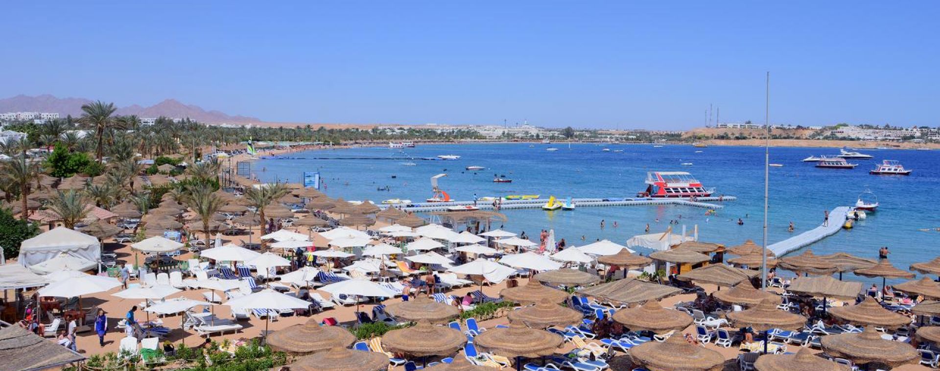 Собствен, пясъчен, достига се с шатъл бус. Чадъри и шезлонги на плажа и при басейна - безплатно. Плажни кърпи - безплатно.