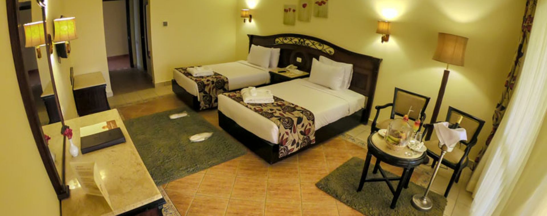Всички стаи са оборудвани с климатик, телевизор, телефон, баня с душ, сешоар, сет за чай/кафе, минибар (платен), сейф, балкон. Почистване на стаите и смяна на кърпите – всеки ден, смяна на спалното бельо – 2 пъти в седмицата.
