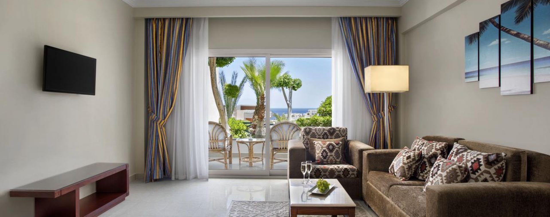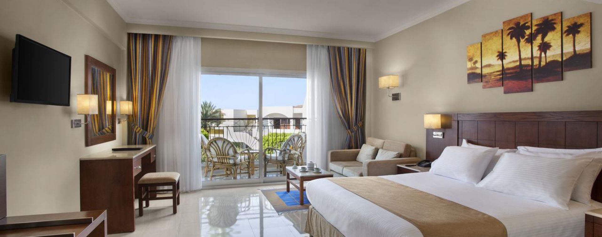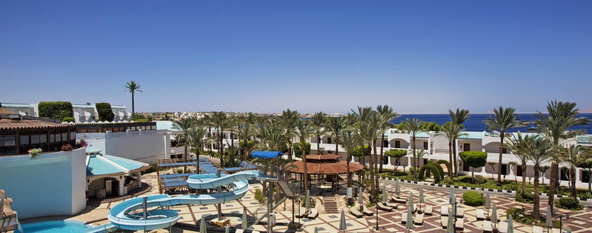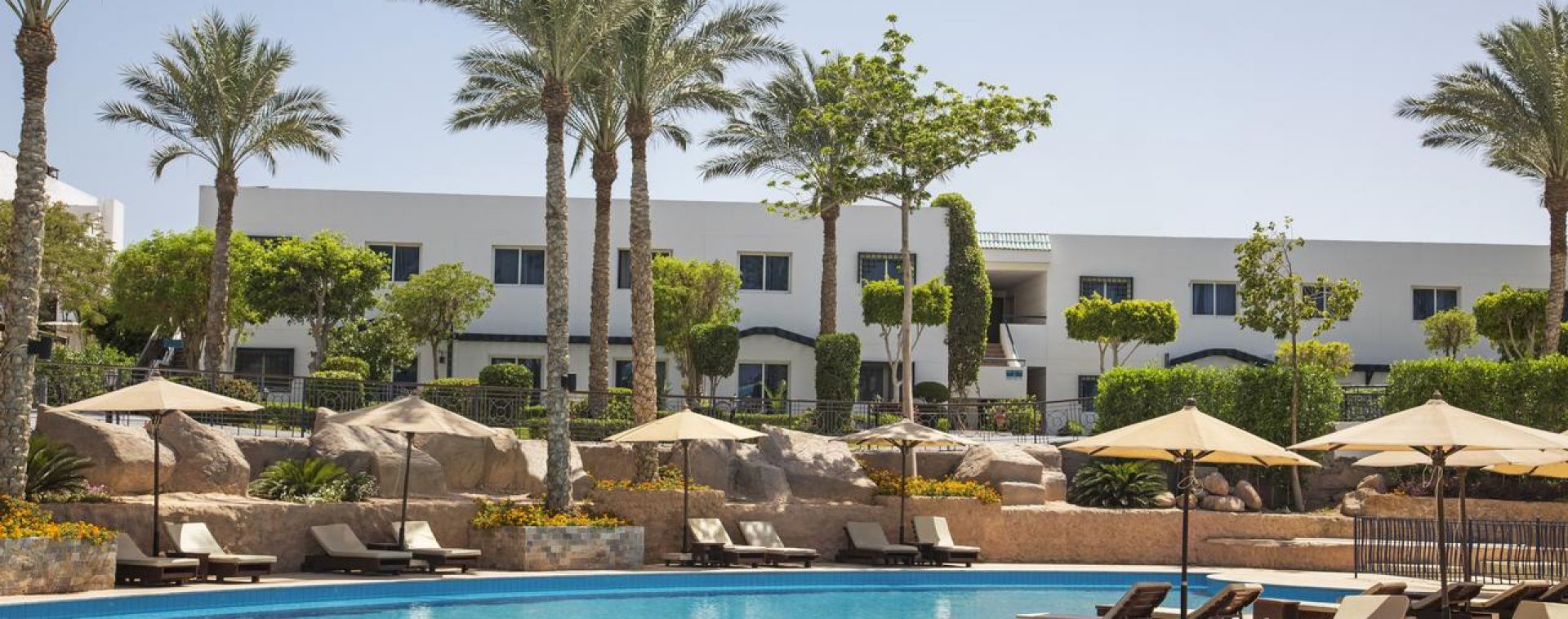 Намира се на 5 км от летище Шарм ел-Шейх, на 7 км от Наама бей, на брега на морето, върху площ от 105 000 кв.м. Реновиран през 2023 г.