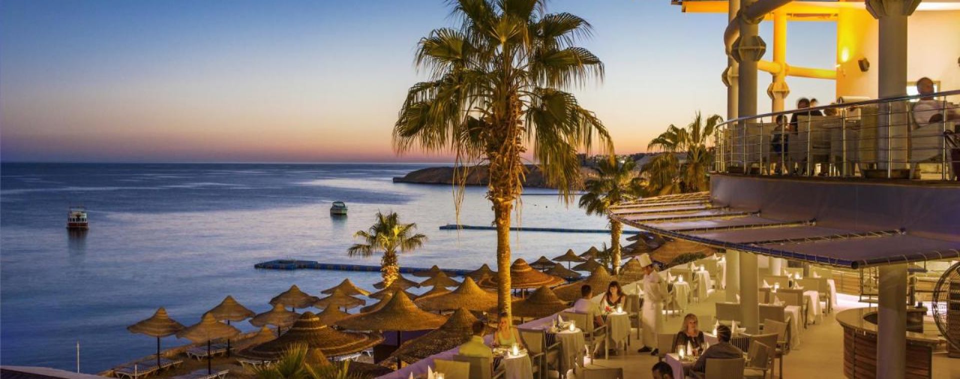 Основен ресторант, 2 а-ла-карт ресторанта 2 а-ла-карт ресторанта( италиански и морски – срещу заплащане), 7 бара, 4 открити басейна ( 3 от които са отопляеми), дискотека.