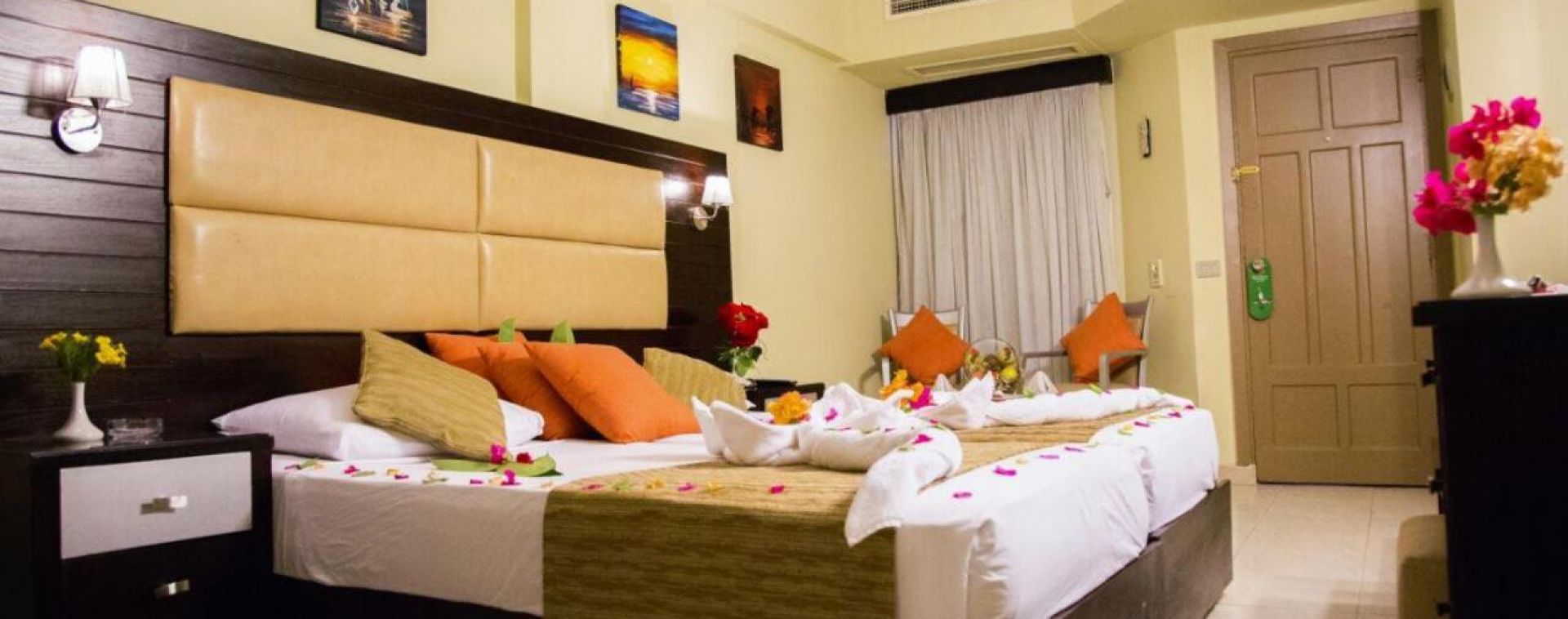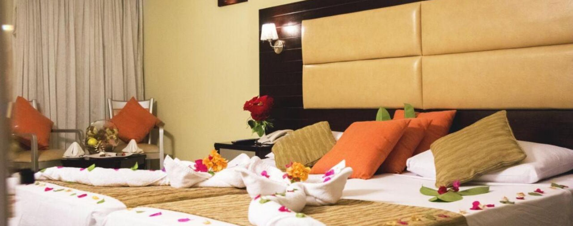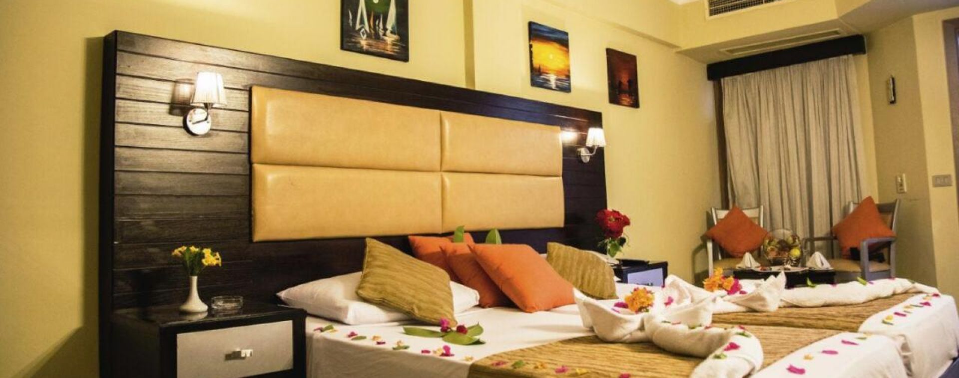 Всички стаи са оборудвани с климатик, телевизор, телефон, минибар, баня с вана/душ, сешоар, балкон/тераса. Почистване на стаите и смяна на кърпите – всеки ден, смяна на спалното бельо – 3 пъти в седмицата.