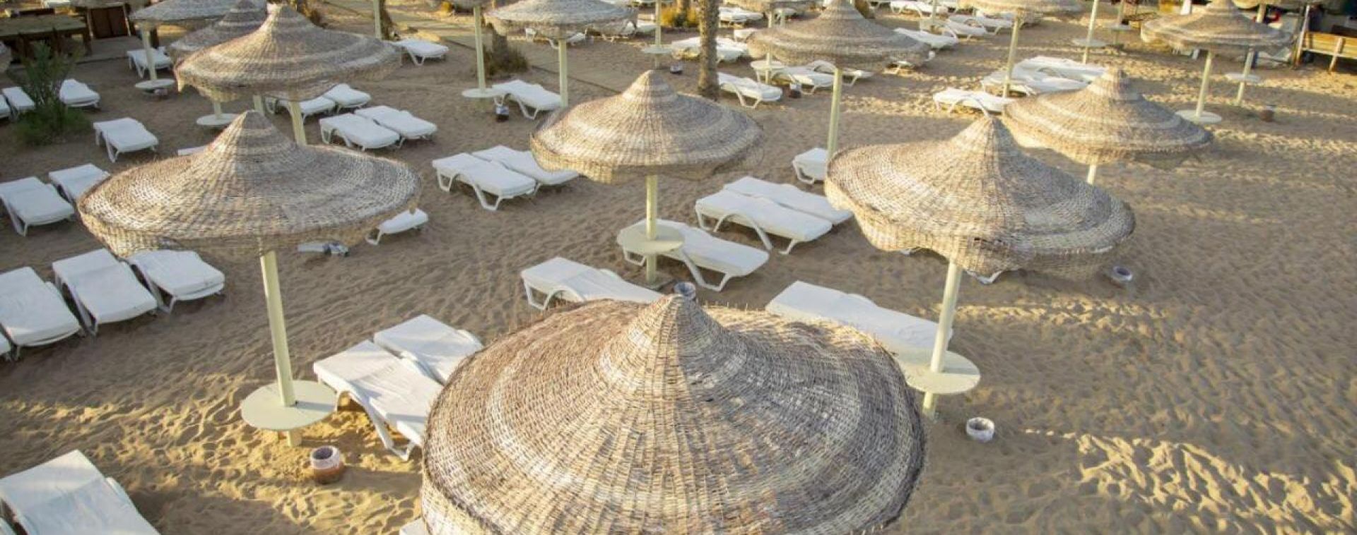 Собствен, пясъчен, кей, достига се през крайбрежната алея. Чадъри и шезлонги на плажа и при басейна - безплатно. Плажни кърпи - безплатно.