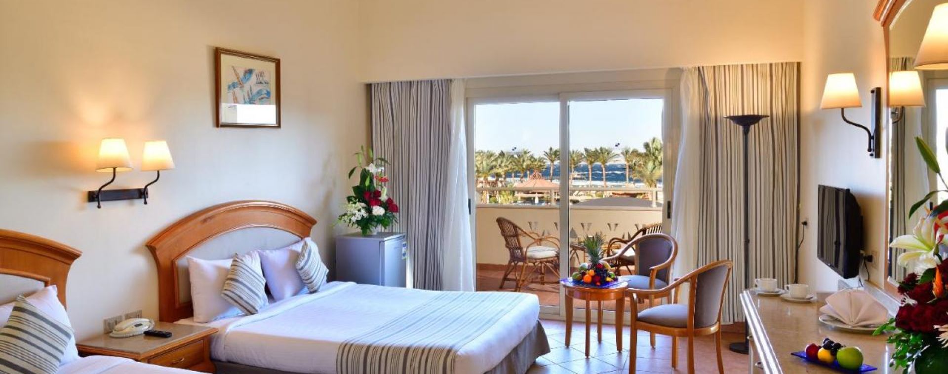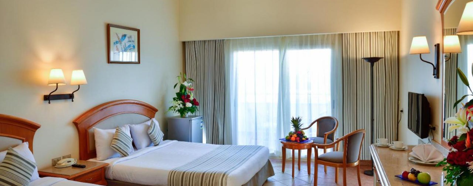 Всички стаи са оборудвани с климатик, телевизор, телефон, баня с вана/душ, сешоар, минибар (платен), сейф (безплатен), сет за чай/кафе, ютия (при запитване), балкон. Почистване на стаите – всеки ден.