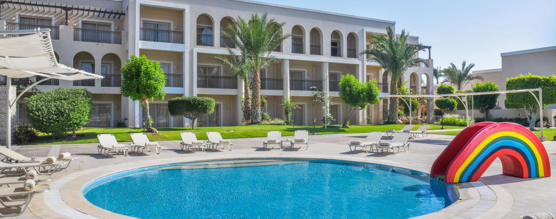 • Клиентите могат да използват инфраструктурата на хотел Jaz Mirabel Beach с изключение на основния ресторант!