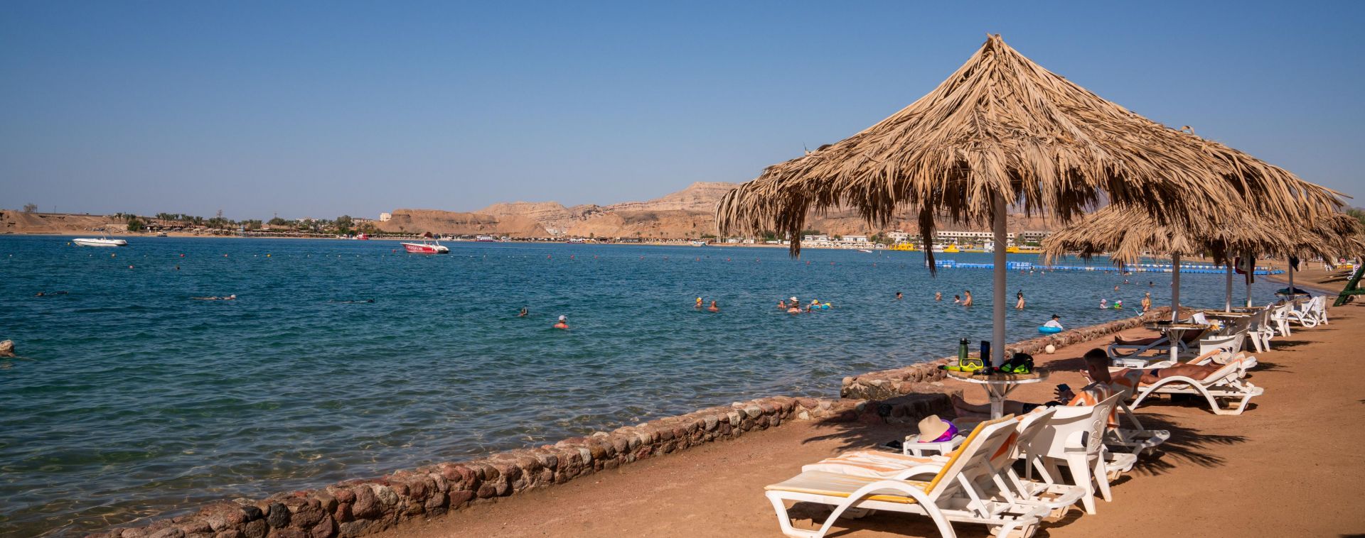 Собствен, пясъчен. Чадъри, шезлонги и плажни кърпи на плажа и при басейна – безплатно.
