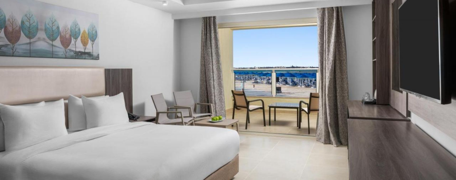 Намира се на 35 км. от летище Хургада, на 49 км. центъра на Хургада, на брега на морето.