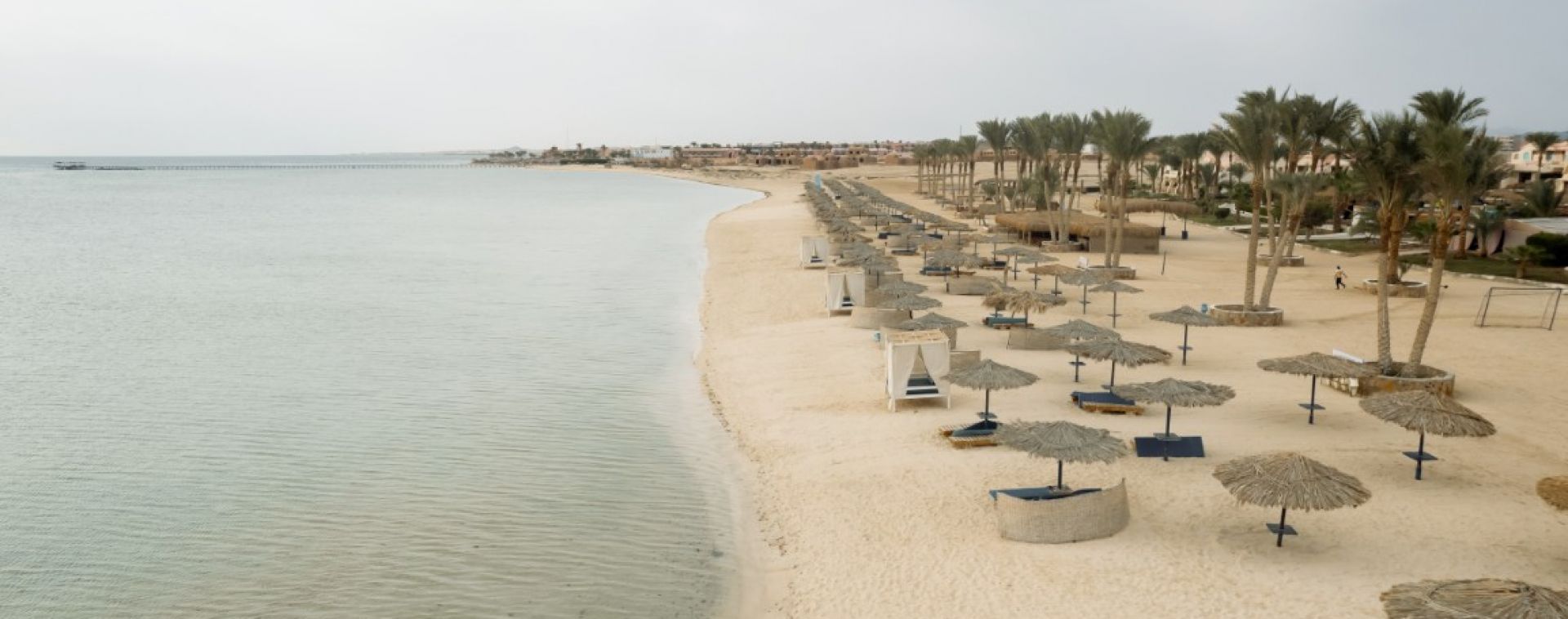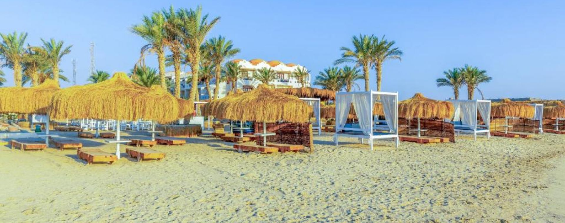 Собствен, пясъчен. Чадъри, шезлонги и плажни кърпи на плажа и при басейна - безплатно.