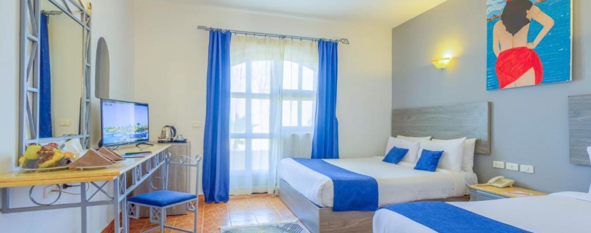 Всички стаи са оборудвани с климатик, телевизор, телефон, баня с душ, сешоар, сет за чай/кафе, минибар, сейф, балкон/тераса. Почистване на стаите и смяна на кърпите – всеки ден, смяна на спалното бельо – 2 пъти в седмицата.