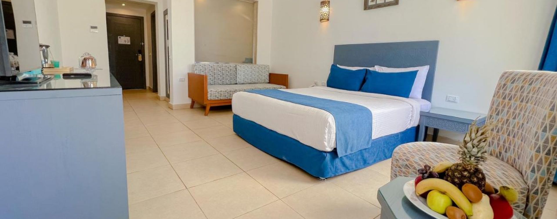 Намира се на 20 км. от летище Шарм ел-Шейх, на 7 км. от Наама бей, на брега на морето. Последна реновация 2022 год.