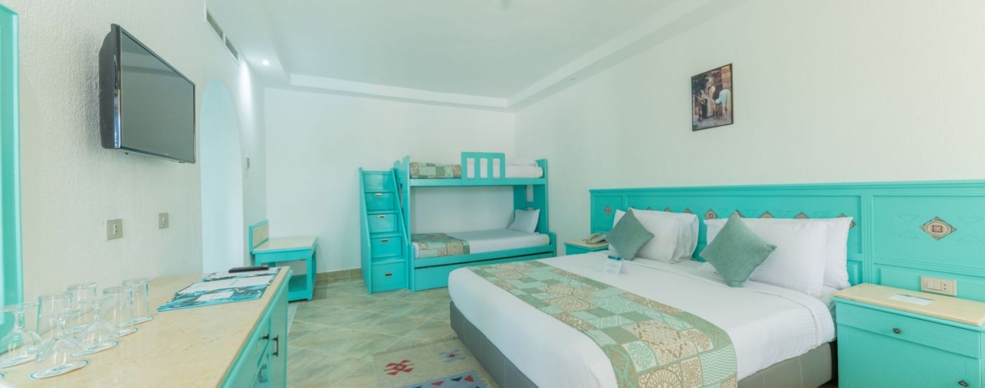 Хотелът разполага с общо 465 стаи - 171 Standard Rooms (36 м2), 81 Aqua Rooms (55 м2), 53 Family Rooms Bunk Bed (55 м2), 154 Family Suites (70 м2), 1 Pool Suite (65 м2), 1 Executie Pool Suite (100 м2), 4 Special Needs View (36 м2).