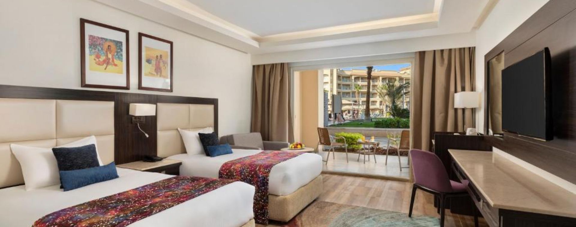 Pickalbatros White Beach Resort - Hurghada се намира на брега на морето в Хургада, в региона на Червено море, само на 5 километра от Новото яхтено пристанище. Предлага частен пясъчен плаж с открит басейн, детска площадка и тераса. Осигурен е безплатен WiFi навсякъде. Хотелската база на база ол инклузив предлага детски аквапарк на място.