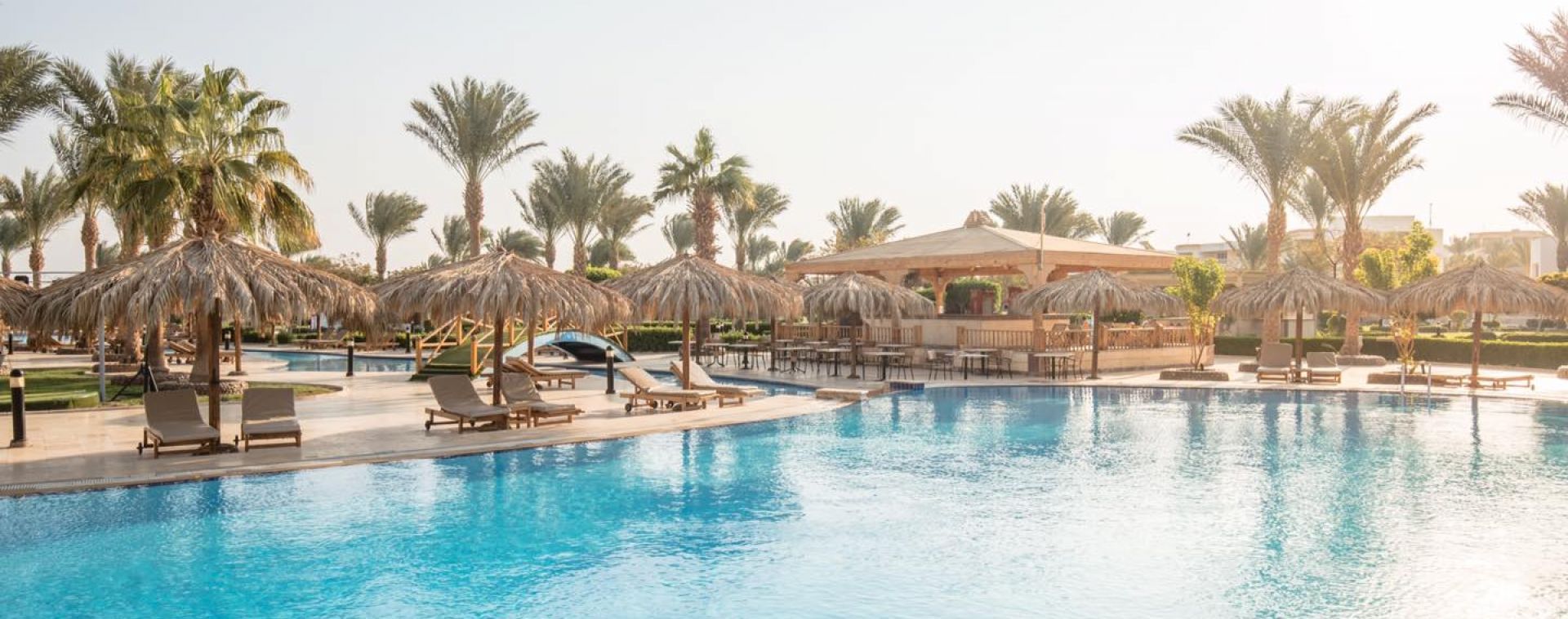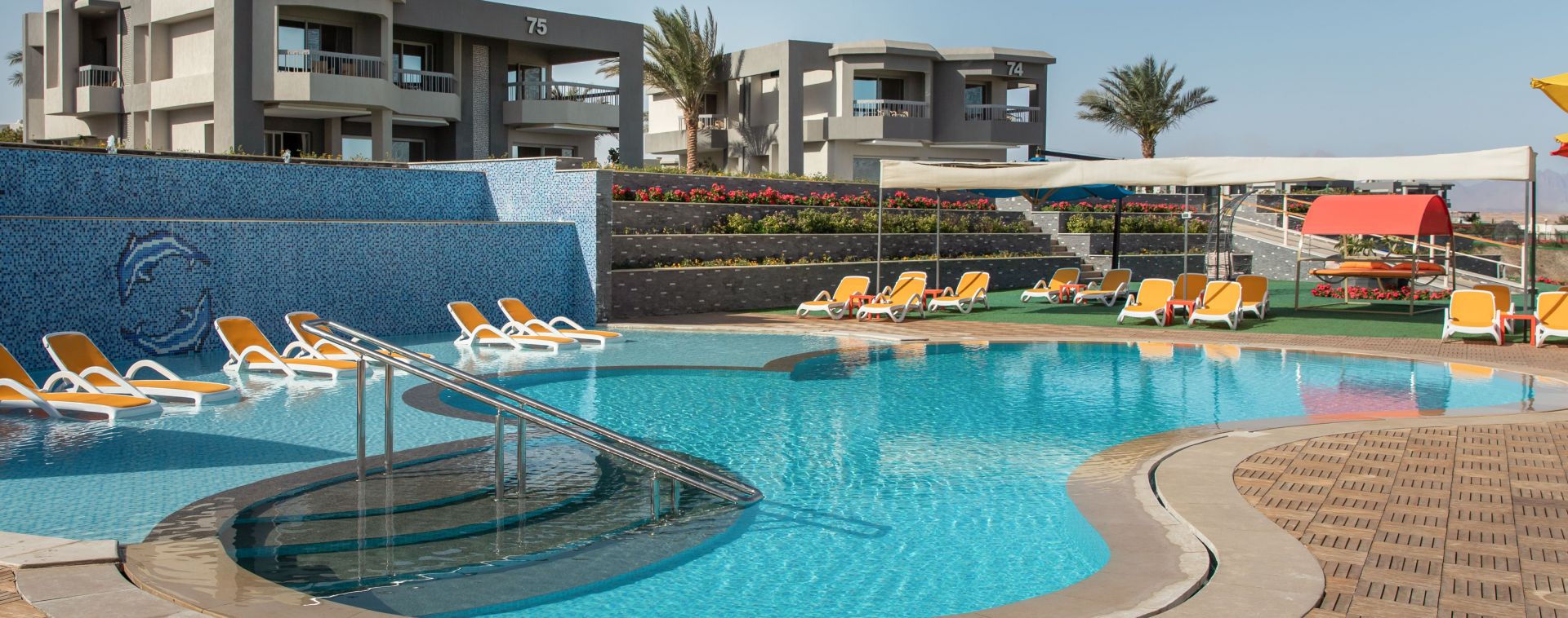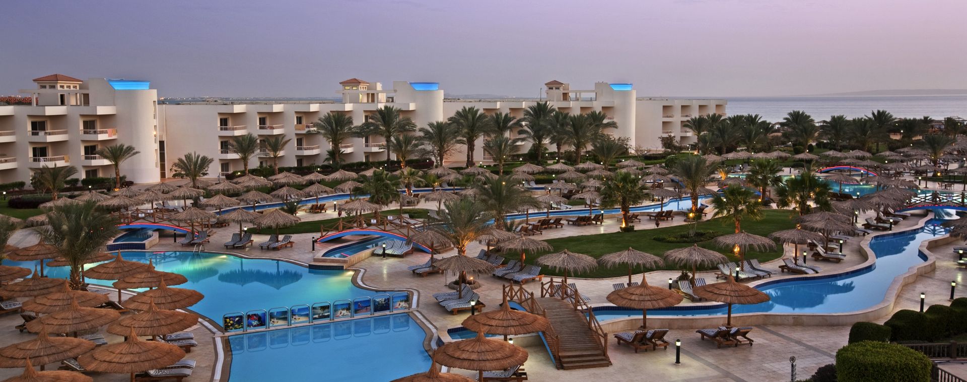 Намира се на 14 км. от летище Хургада, на 22 км. от центъра на Хургада, на брега на морето с частно яхтено пристанище. Построен през 2003 г. Последно реновиран през 2022 г.