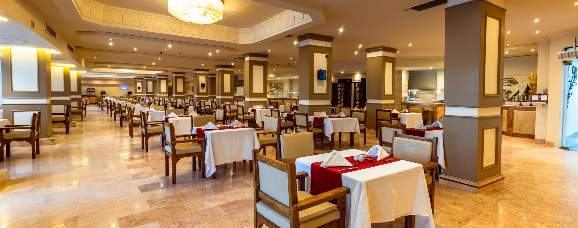 Основен ресторант, 2 а-ла-карт ресторанта (италиански и азиатски- срещу заплащане/с предварителна резервация, съгласно концепцията на хотела/ 1 безплатно посещение на 1 от ресторантите при минимум 7 нощувки), 4 бара (1 бар 24h ), 2 открити басейна, водни пързалки, тенис корт, конферентна зала, магазини.
